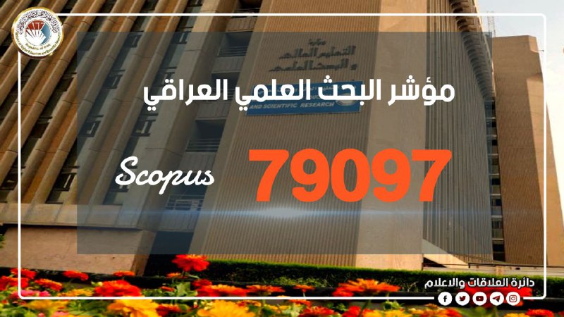 عملا بسياستها المعتمدة في مجال البحث العلمي وحرصا على التفاعل الأكاديمي لمؤسساتها الجامعية على أوسع نطاق عالمي ممكن تعلن وزارة التعليم العالي والبحث العلمي ارتفاع وزيادة مؤشر بحوث الجامعات العراقية المنشورة في مستوعبات سكوبس العالمية الى تسع وسبعين ألف وسبعة وتسعين بحثا.