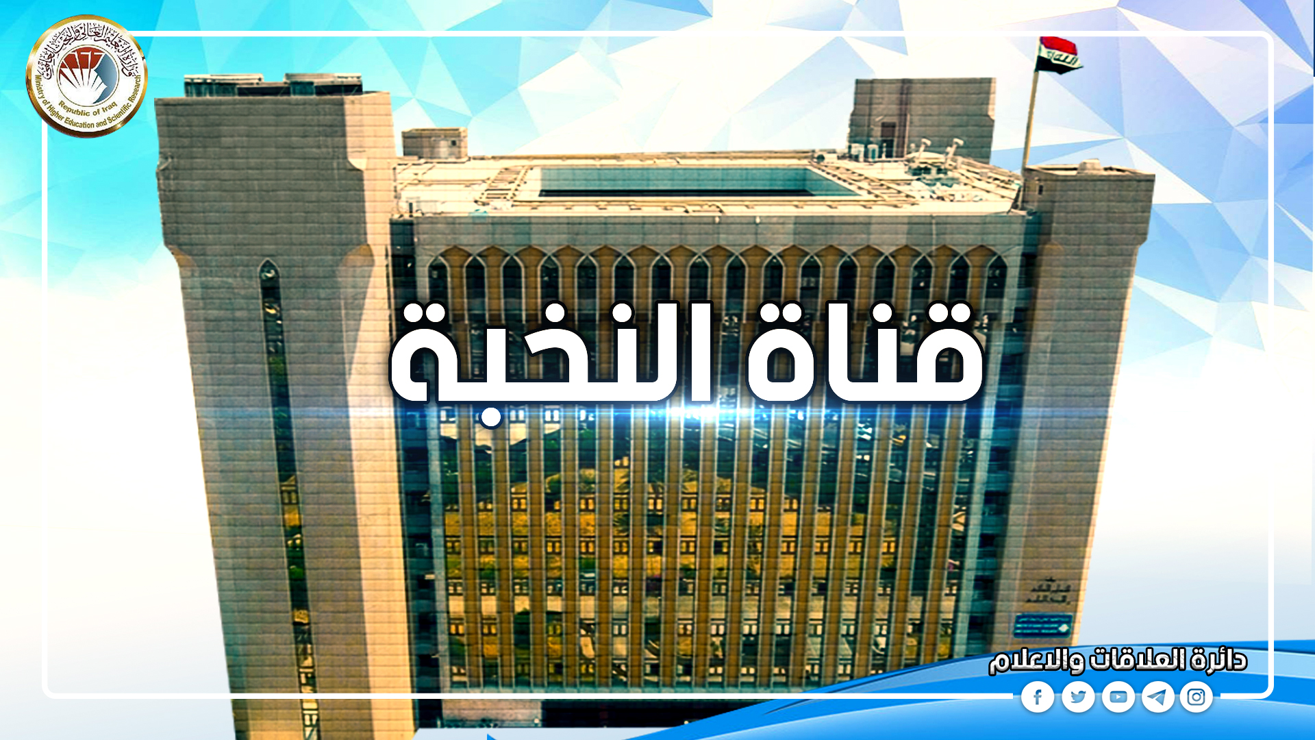 تعلن وزارة التعليم العالي والبحث العلمي أن قناة النخبة لقبول الطلبة للسنة الدراسية 2022/2021 تستمر الى غاية السابع والعشرين من تشرين الأول الحالي.