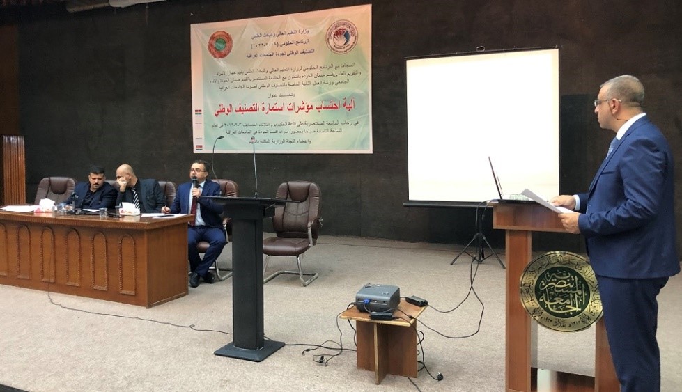 وتناولت الورشة التي استضافتها الجامعة المستنصرية التعريف بآلية وكيفية إحتساب المؤشرات الواردة في إستمارة التصنيف الوطني لجودة الجامعات، التي تتبعها وزارة التعليم العالي والبحث العلمي، فضلاً عن متطلبات تطبيقها لقياس كل من درجة الأداء المؤسسي في الأقسام الإدارية بالجامعات ودرجة أداء الأقسام العلمية في الكليات.