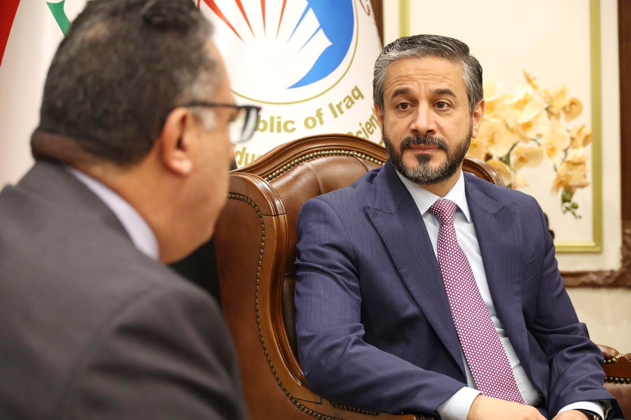 استقبل وزير التعليم العالي والبحث العلمي الدكتور نعيم العبودي الأمين العام لاتحاد مجالس البحث العلمي العربية الدكتور عبد المجيد بن عمارة وذلك في إطار الاستعدادات الجارية لإعادة افتتاح مقر الاتحاد في العاصمة بغداد.