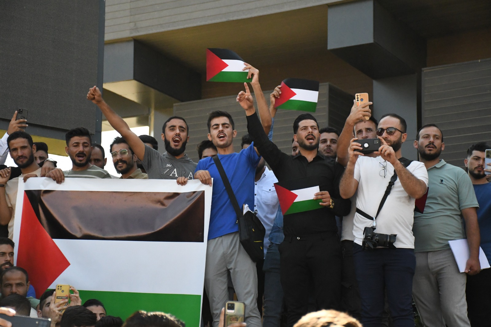 وأكد المحتجون تضامنهم الكامل مع الفلسطينيين المحاصرين في