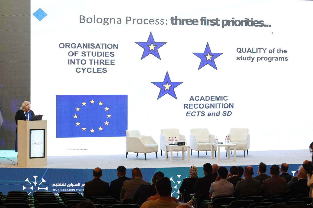 وشهدت الجلسات والنقاشات محاور وتوصيات تتعلق باستراتيجيات الجذب الأكاديمي إقليميا ودولياً ومبادرة مؤسسة (Times Higher Education) لتعزيز مكانة الجامعات العراقية عالميا والتحول الرقمي الشامل والشراكة مع مؤسسة (Elsevier) والاعتماد الأكاديمي واستراتيجية البحث العلمي في العراق وشراكة وزارة التعليم العالي مع (Clarivate) واستراتيجية الجامعات العراقية في تصنيف QS العالمي ودور التشريعات في تطوير التعليم العالي ومخرجات التعلم وسوق العمل ودور المجلس الثقافي البريطاني في تدويل التعليم العالي ودور المنظمات الدولية في دعم استراتيجيات تطوير التعليم العالي في العراق والتعاون العربي في بناء اقتصاد المعرفة وحدائق العلوم والتكنولوجيا وحاضنات الأعمال وتطبيق (Bologna Process) في الجامعات العراقية.