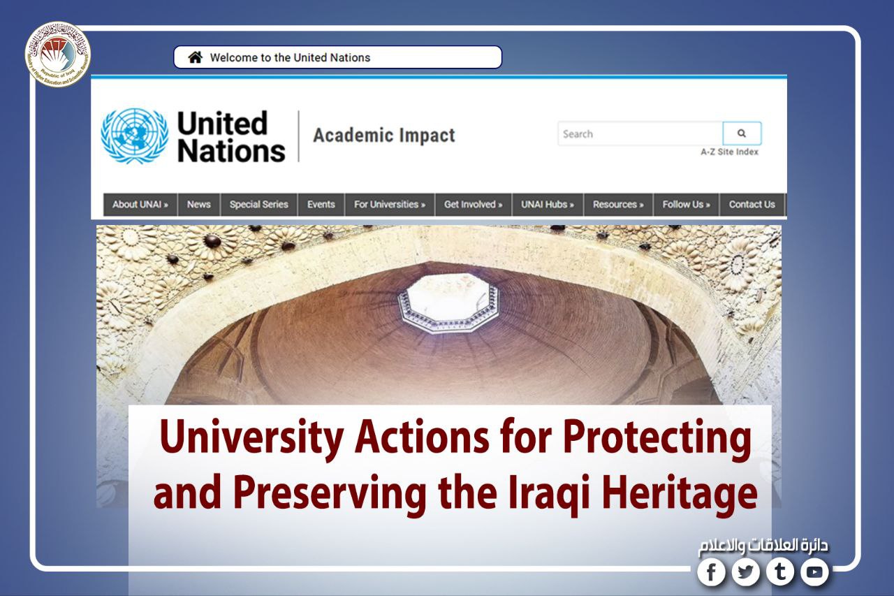 تأكيدا للتكامل العالمي الهادف وعملا بالمهام التي تضطلع بها الجامعات العراقية في الحفاظ على البيئة الثقافية والحضارية للعراق ولاسيما الجامعات التي حصلت على عضوية برنامج الأثر الأكاديمي للأمم المتحدة (The United Nations Academic Impact UNAI) فإن موقع المنظمة الدولية (https://www.un.org/en/academic-impact/university-actions-protecting-and-preserving-iraqi-heritage?mc_cid=fce4577f22&mc_eid=99ab047a33) يشيد بإجراءات الجامعة التكنولوجية لحماية التراث العراقي والحفاظ عليه من خلال أخذ زمام المبادرة بتأسيس أول وحدة لتكنولوجيا الحفظ التاريخي التزاما بأجندة وأهداف التنمية المستدامة وتصميم برنامج للدراسات العليا ضمن مجال الهندسة المعمارية وتنفيذ مشروع (UOT Virtual Museum) لحفظ التراث العراقي وتوثيقه رقميا.
