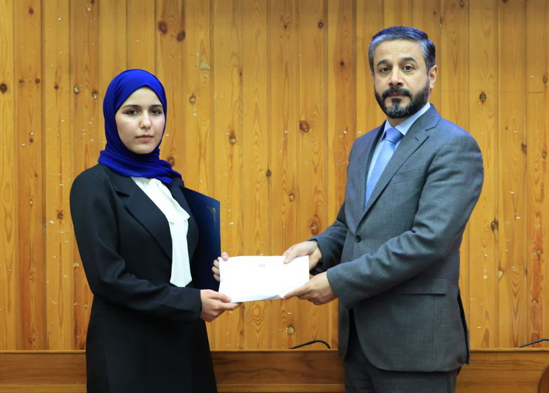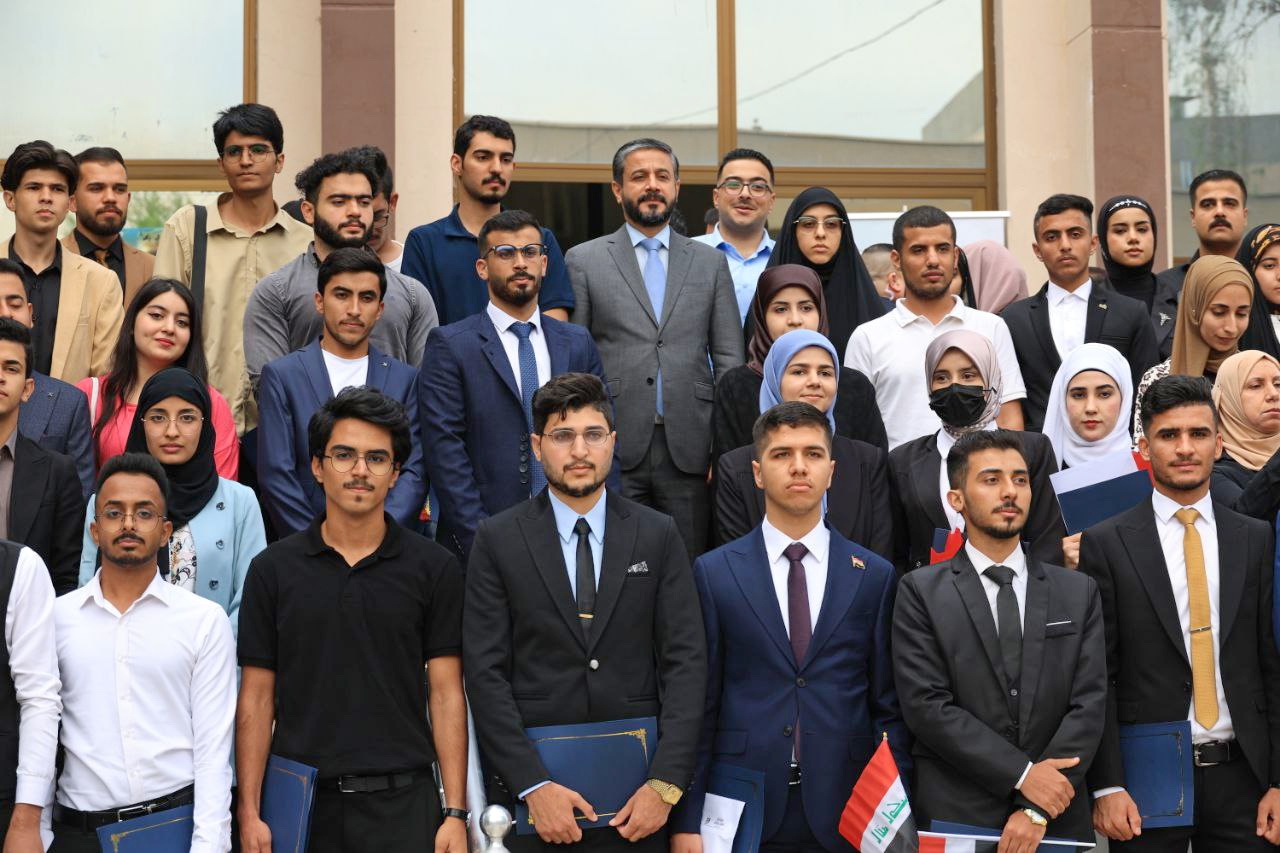 العلمي الدكتور نعيم العبودي الطلبة الفائزين بجائزة التعليم العالي للقراءة بحضور