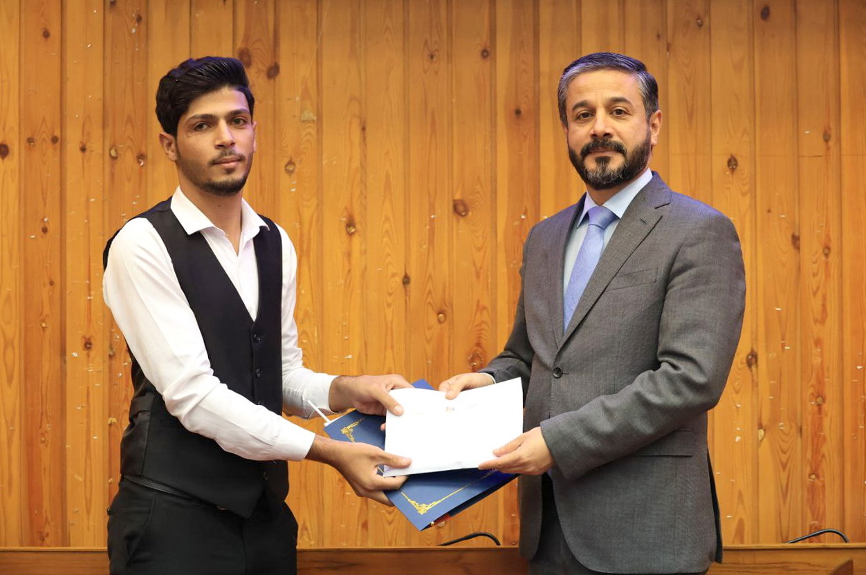 واختتم وزير التعليم العالي والبحث العلمي الدكتور نعيم العبودي فعاليات الحفل بتكريم الطلبة الفائزين بجائزة التعليم العالي للقراءة التي بلغت مئة مليون وبواقع خمسة ملايين لكل فائز معربا في ذات الوقت عن تهنئته وشكره لجميع الفائزين والمشاركين والجامعات والكليات الساندة وأعضاء اللجنتين المنظمة والفنية اللتين قدمتا جهدا جديرا بالثناء والتقدير.