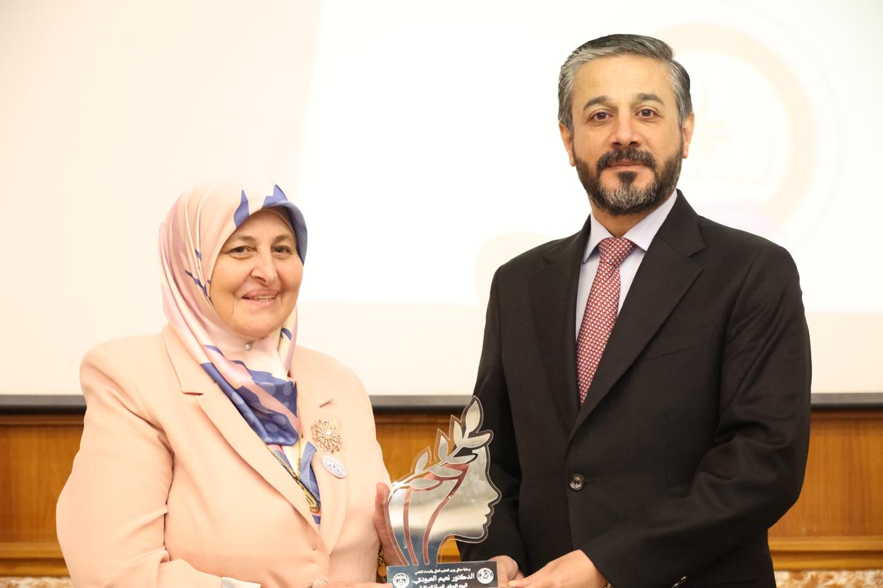 كرم وزير التعليم العالي والبحث العلمي الدكتور نعيم العبودي التدريسيات والموظفات المتميزات في مؤسسات التعليم العالي بمناسبة إطلاق الخطة الوطنية الثالثة للمرأة والأمن والسلام.
