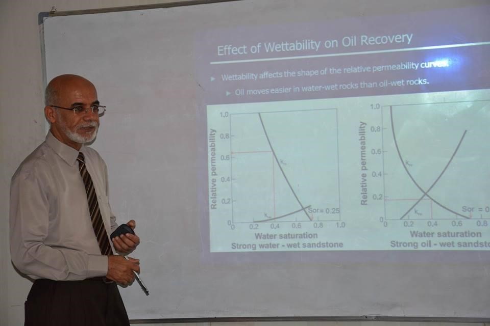 وتضمنت الورشة التعريف باليات قابلية تبلل الصخور وتوزيع الموائع المكمنية داخلها والاعتبارات في تصنيف الصخور المكمنية إلى صخور مائية التبلل وصخور نفطية التبلل، وطرائق قياس زاوية الالتصاق.