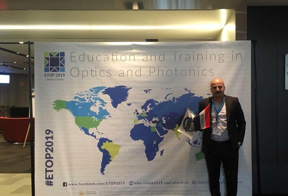 شارك التدريسي في كلية علوم الطاقة والبيئة بجامعة الكرخ للعلوم مهند جمال عباس، بمؤتمر البصريات والفوتونيات(ETOP 2019)، والذي نظمته منظمتا SPIE و OSA الرائدتين في مجال البصريات والليزر في جامعة لافال / كندا، وبمشاركة باحثين من مختلف دول العالم.