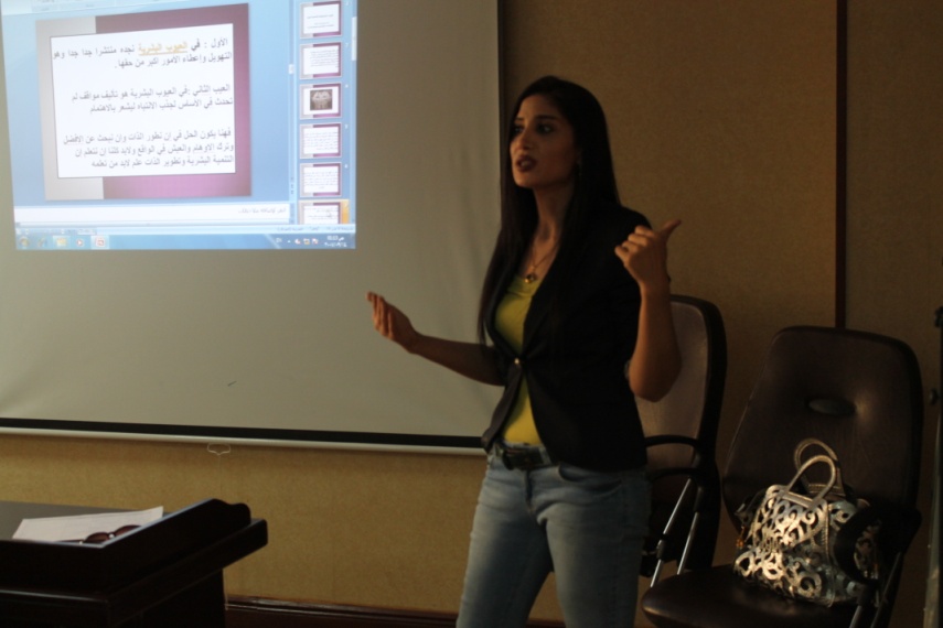 وبحثت المحاضرة , مشاكل ومعوقات التنمية البشرية, واليات تطوير الذات, ودور الفن التعامل الدبلوماسي في التعاملات اليومية.