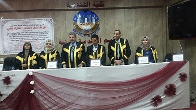 ناقشت رسالة ماجستير في كلية الهندسة بجامعة بابل، دراسة مقارنة نماذج إمتزاز لإزالة صبغة الميثلين الزرقاء من محاليل المياه الاصطناعية باستعمال الطين المفخور.