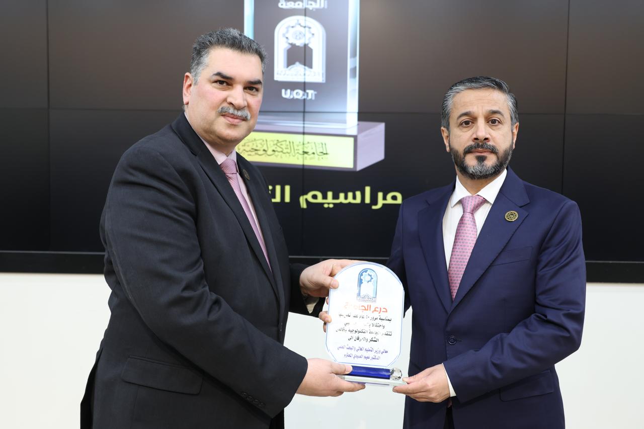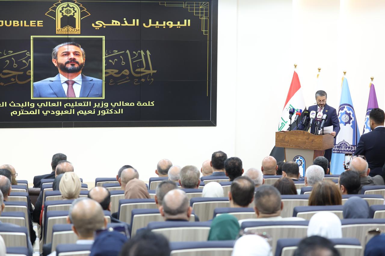 وتضمن فعاليات الاحتفالية عرضا لوكيل الوزارة لشؤون البحث العلمي الدكتور عبد ضهد عن استراتيجية التعليم العالي في العراق ومسار الجامعات العراقية في ضوء الإنجازات المتحققة وكلمة لرئيس الجامعة التكنولوجية الدكتور محسن نوري حمزة فيما كرم وزير التعليم العالي والبحث العلمي الدكتور نعيم العبودي نخبة من رواد الجامعة وعددا من رؤسائها السابقين فيما افتتح نصب الجامعة التكنولوجية ومعرضا لمشاريع الطلبة بحضور الطلبة الدوليين.