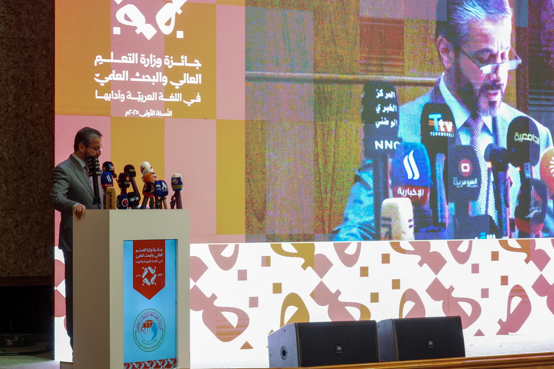 كرّم وزير التعليم العالي والبحث العلمي الدكتور نعيم العبودي الفائزين بجائزة اللغة العربية وآدابها، مؤكّدًا أن هذه الجائزة تمثّل حلقة ضمن منظومة الجوائز العلمية والأكاديمية التي تتبناها الوزارة وتشرف عليها برعاية مباشرة من سيادته.