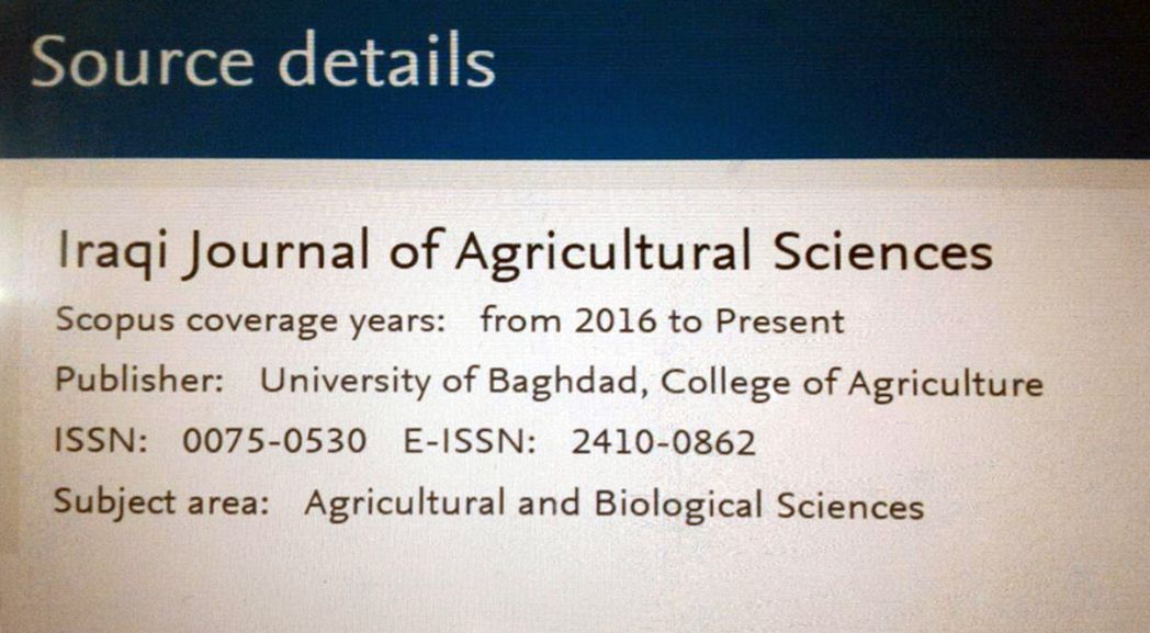 مجلة العلوم الزراعية في جامعة بغداد تدخل ضمن بيانات سكوبس العالمية