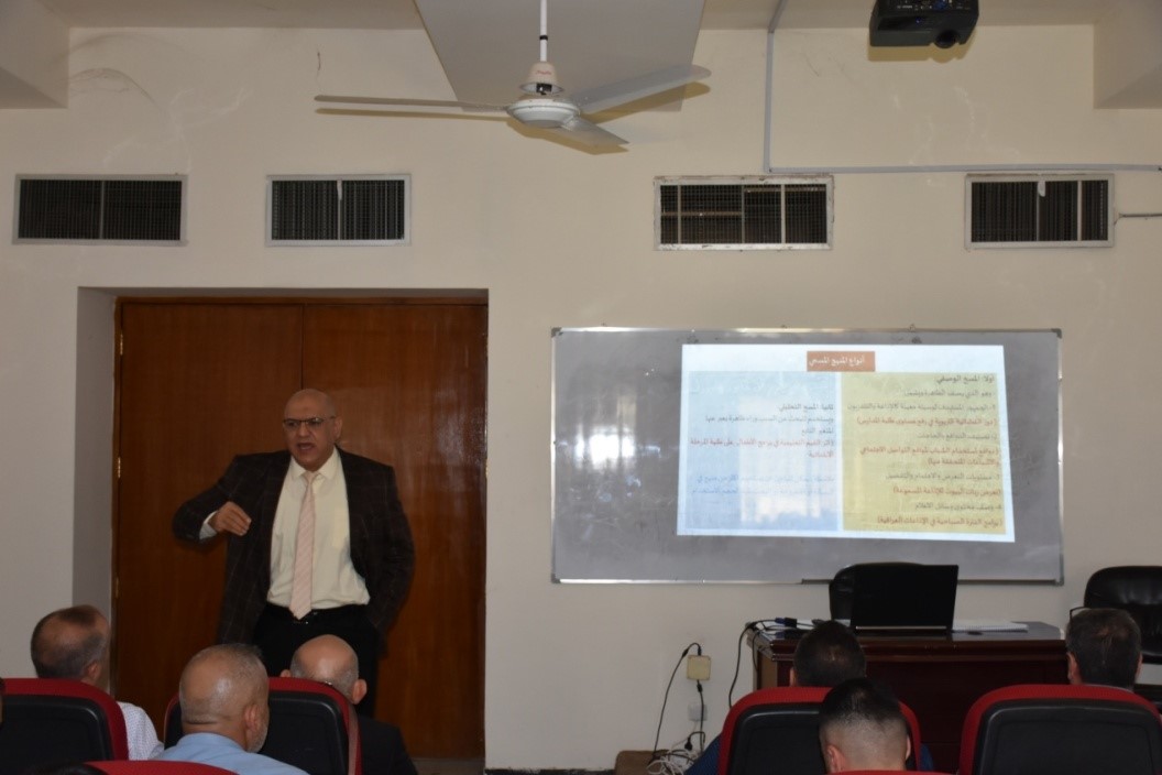 نظم قسم الصحافة الإذاعية والتلفزيونية في كلية الإعلام بجامعة بغداد، محاضرة علمية عن مناهج البحث العلمي، بمشاركة عدد من طلبة الدراسات العليا في كلية الإعلام.