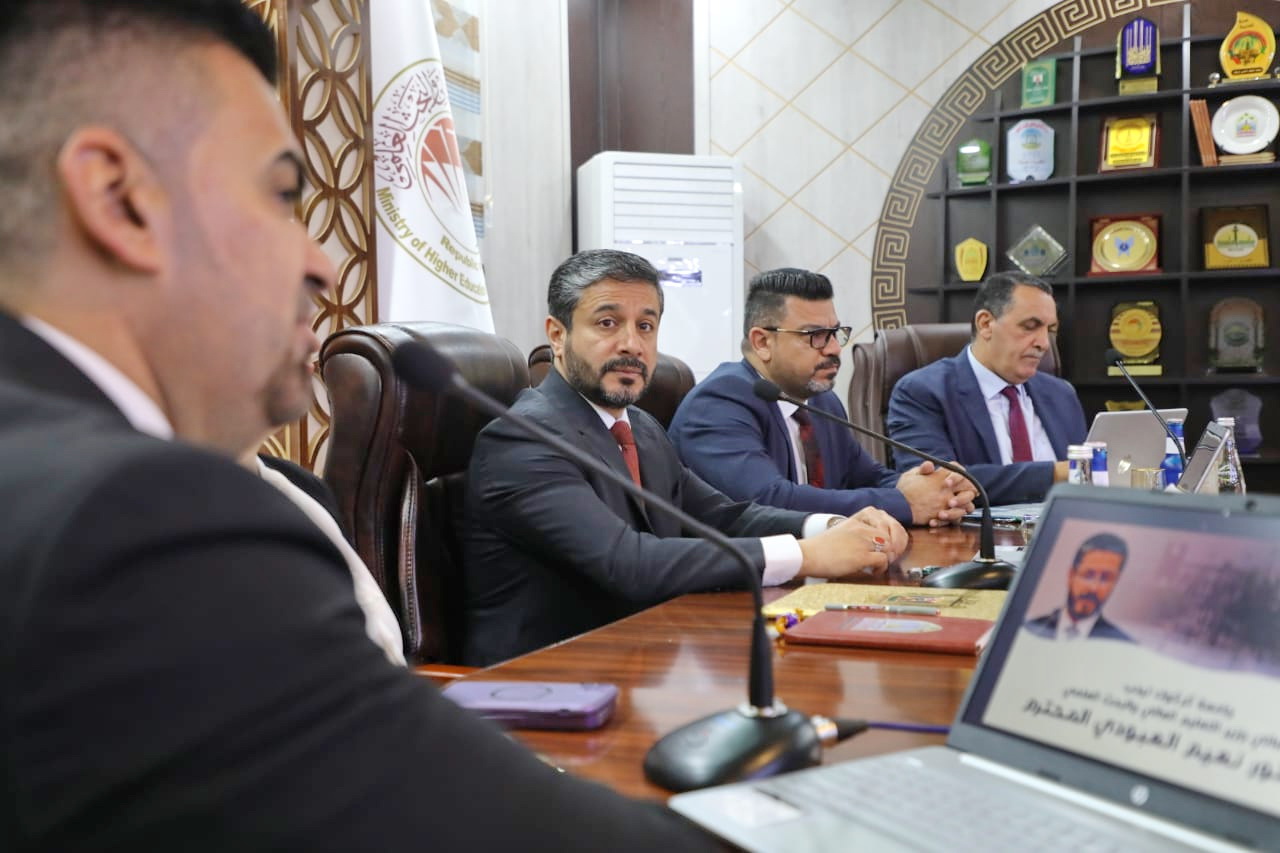 الاجتماع مع مجلس الجامعة بحضور السيد المحافظ راكان سعيد الجبوري وعدد من نواب