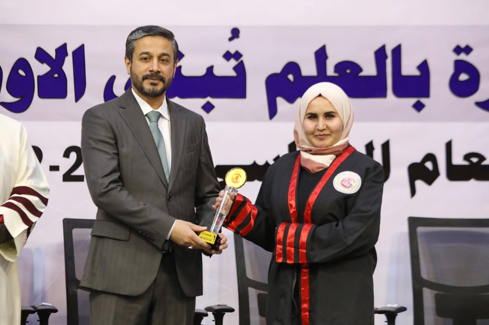وتضمن حفل التخرج ترديد قسم التخرج وكلمة ممثل الطلبة الخريجين وفقرات شعرية فيما اختتم فعاليات الحفل بتكريم الأوائل من قبل وزير التعليم العالي والبحث العلمي الدكتور نعيم العبودي الذي هنأهم بهذه المناسبة التي توجت مشوارا حافلا بالصبر والتميز والنجاح.