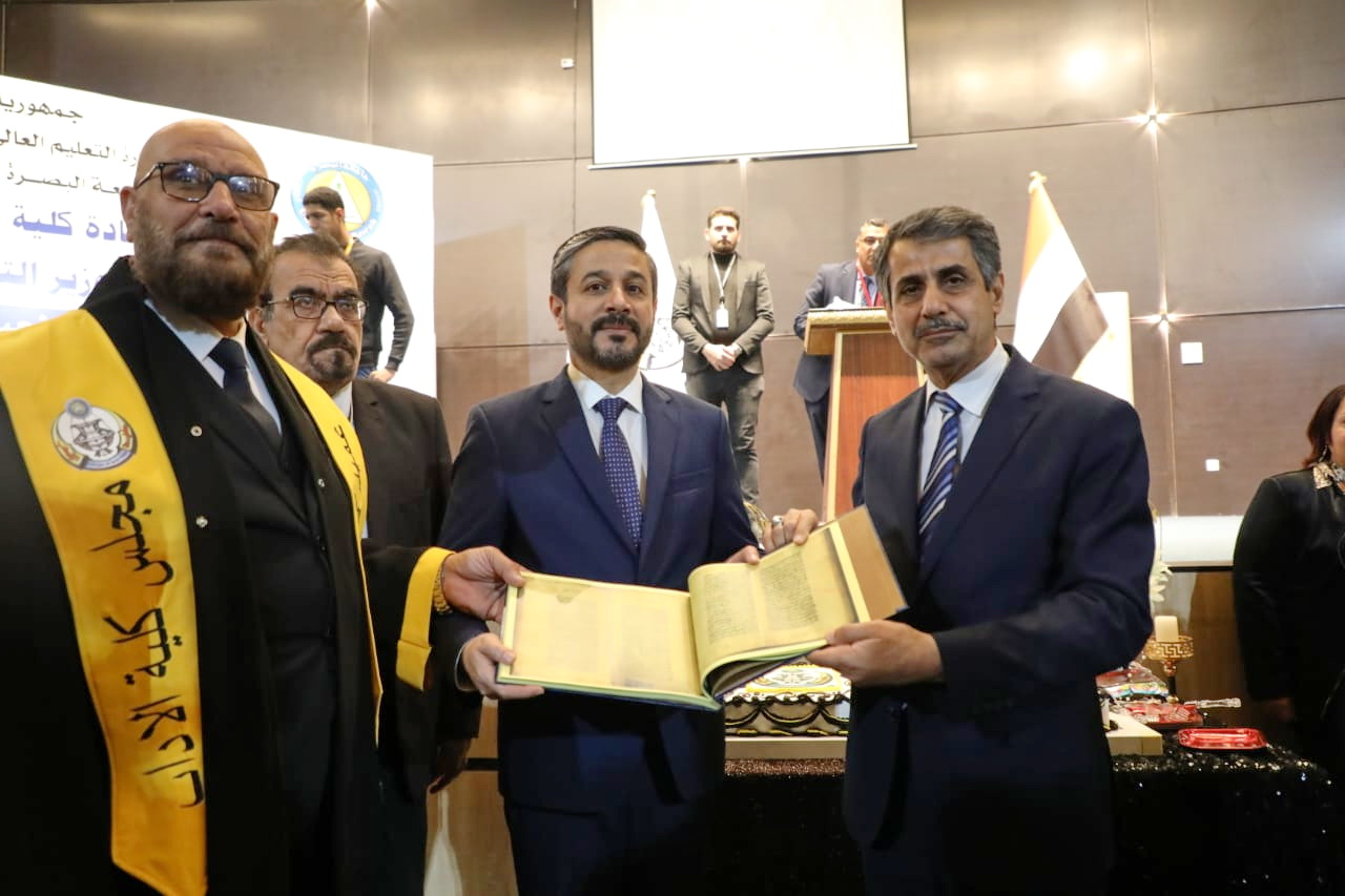 نعيم العبودي تكريم من عمادتي كليتي القانون والآداب فيما قدم عرض يتغنى بتاريخ وحضارة البصرة.