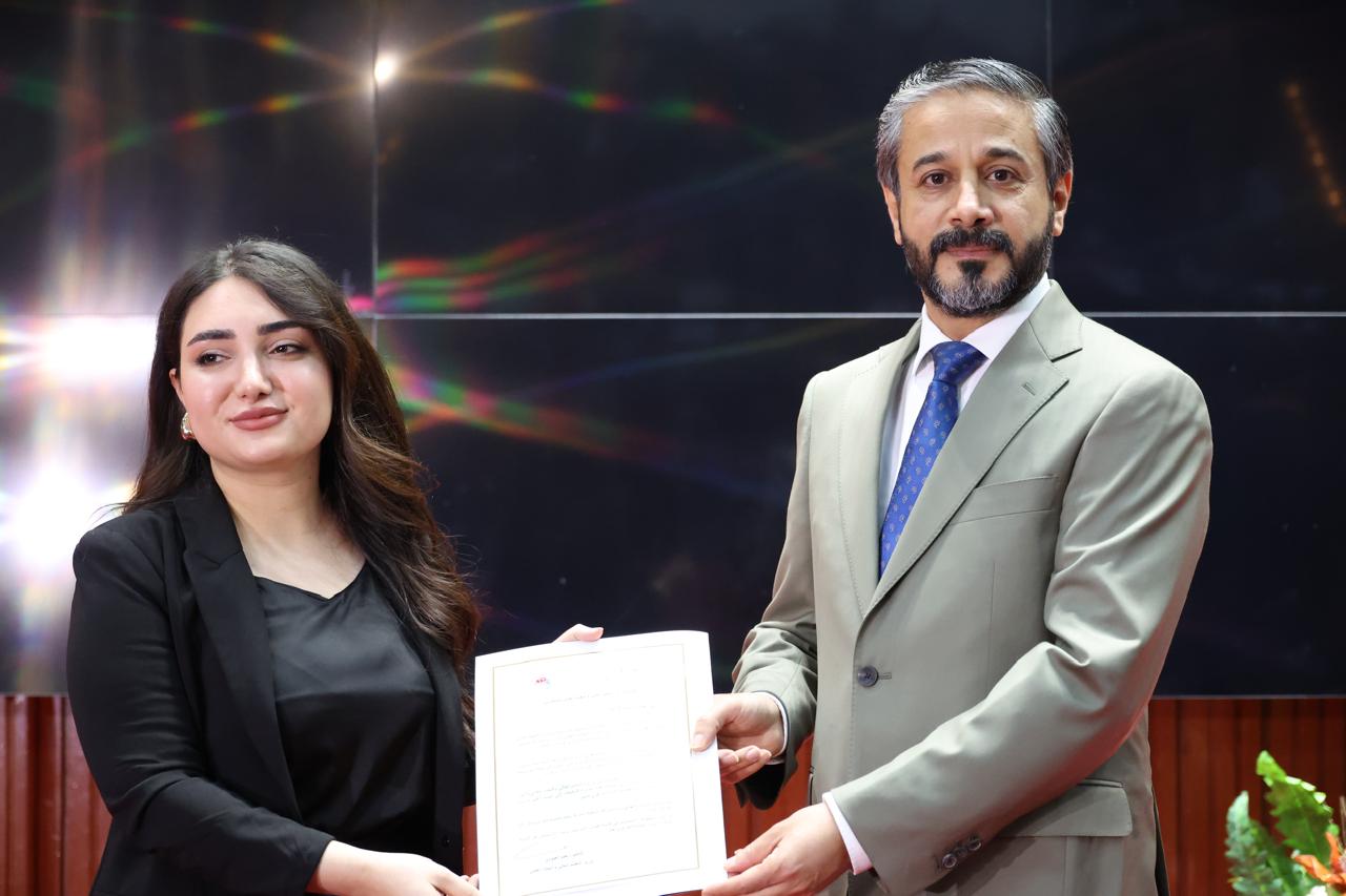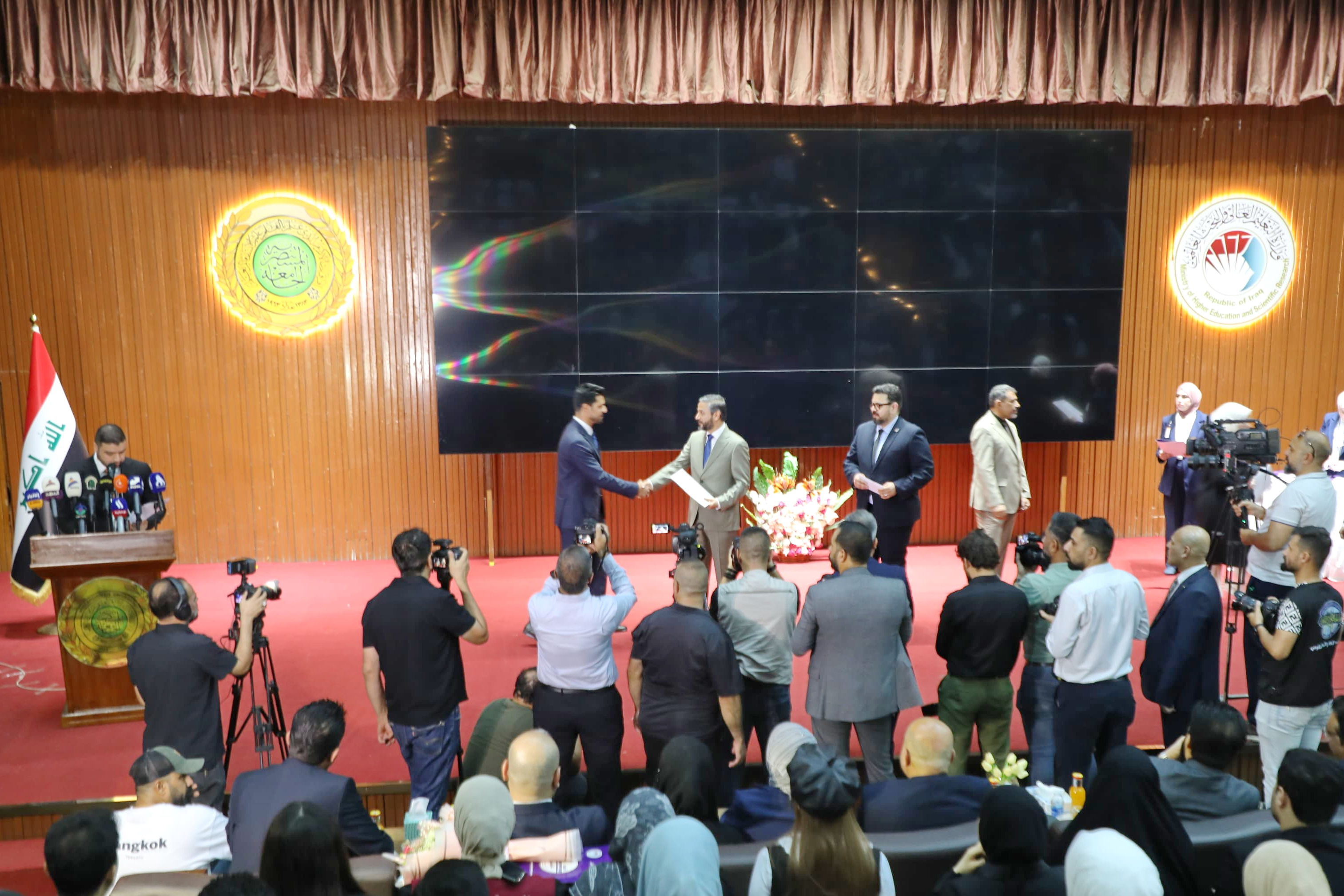كرم وزير التعليم العالي والبحث العلمي الدكتور نعيم العبودي الطلبة الأوائل في الجامعات العراقية بجائزة قائمة وزير التعليم العالي والبحث العلمي للمتفوقين وذلك بحضور الملاك المتقدم ورؤساء الجامعات الحكومية والأهلية ومساعديهم وعمداء الكليات ورؤساء الأقسام وعوائل المكرمين.