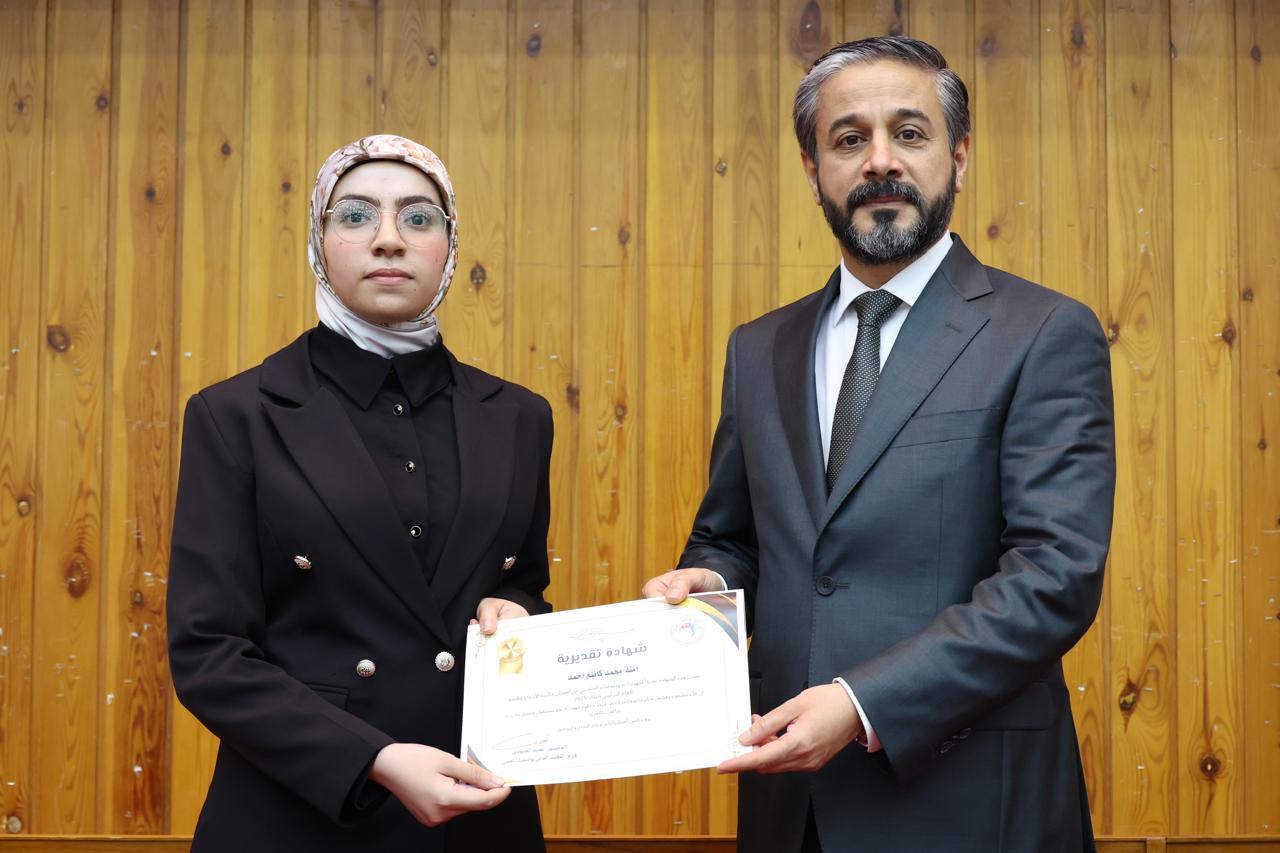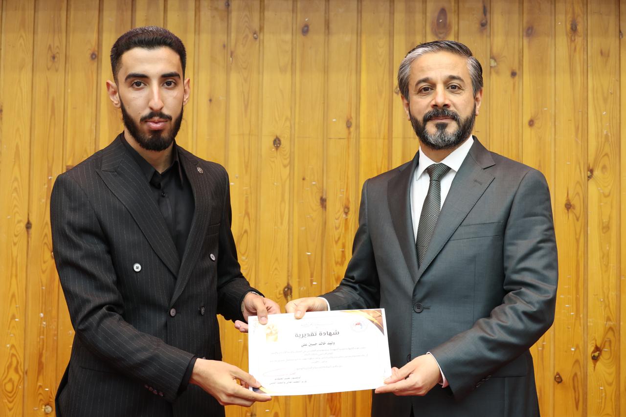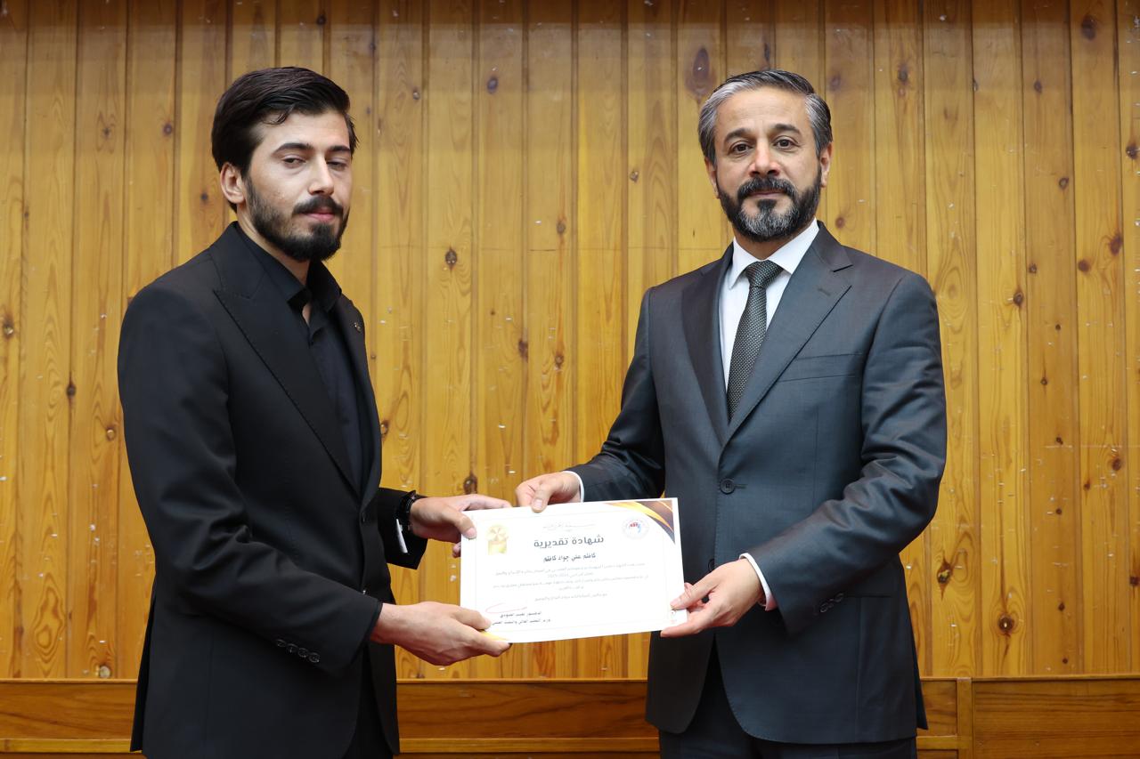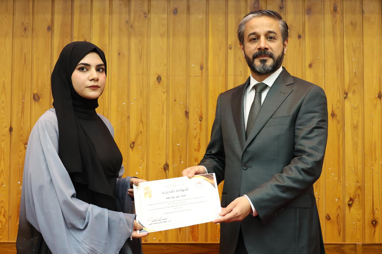 وتضمن حفل التكريم عرضا تقديميا لرئيس جهاز الاشراف والتقويم العلمي الدكتور صلاح هادي صالح الذي استعرض مسارات الاختبار التقويمي وأهمية جائزة الإبداع والتميز في هذا المجال فيما أعرب الطلبة الأوائل عن اعتزازهم بمبادرات الدعم والتحفيز التي يرعاها وزير التعليم العالي والبحث العلمي الدكتور نعيم العبودي مثمّنين اهتمامه بتوفير بيئة أكاديمية محفزة للتنافس والإبداع والارتقاء بالمعرفة في مختلف مجالات التخصص.