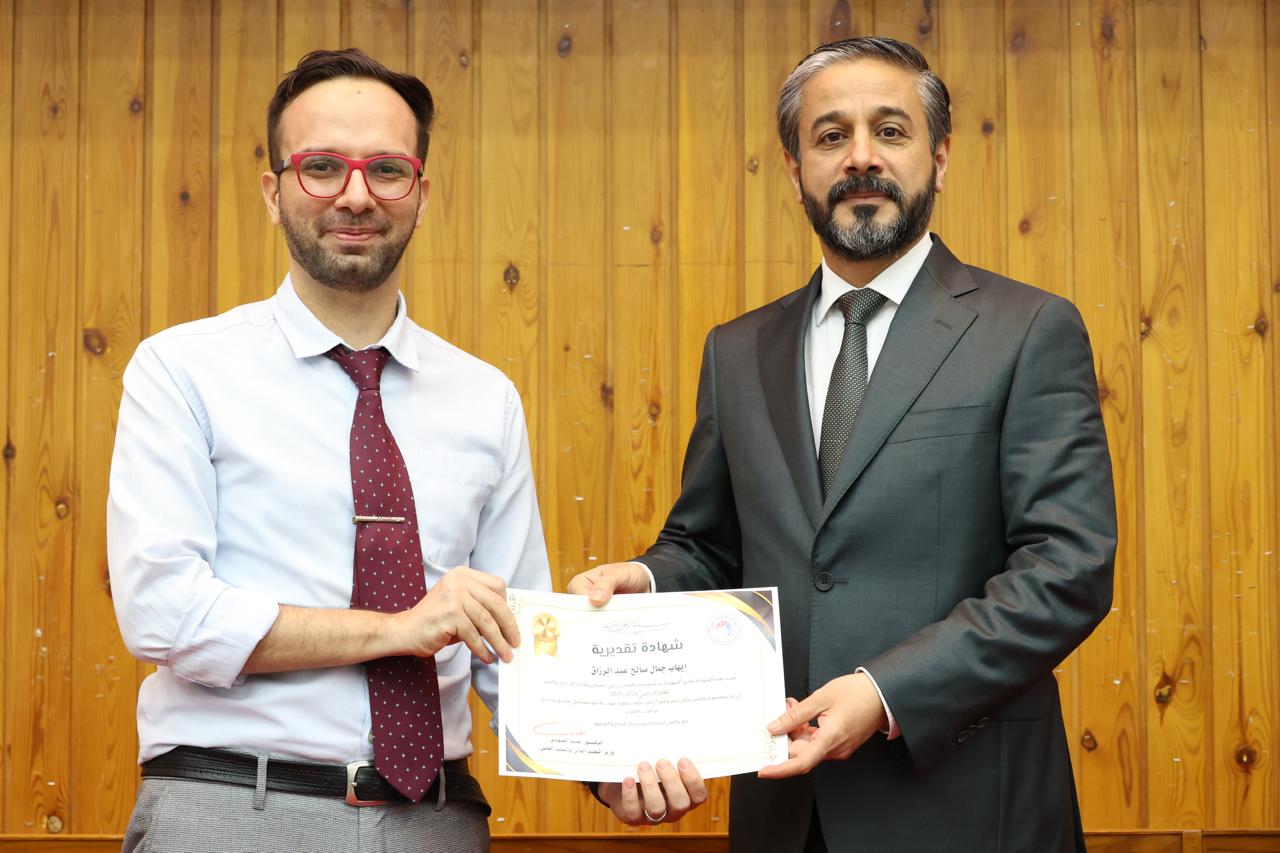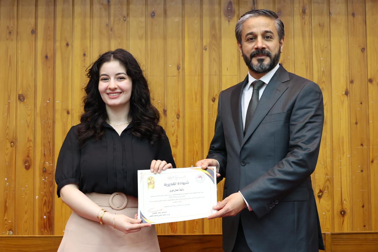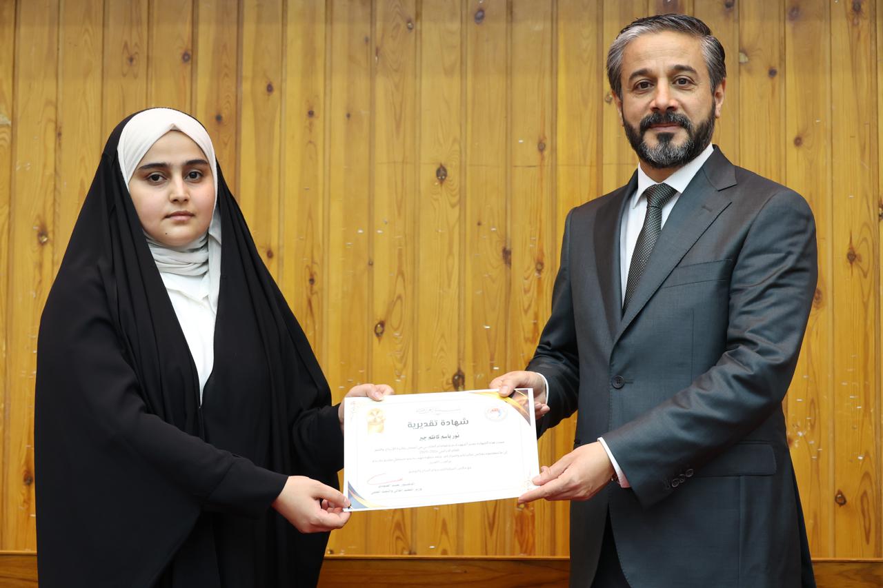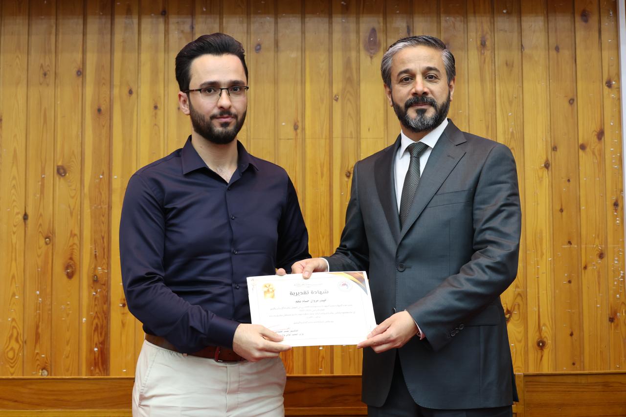 وتضمن حفل التكريم عرضا تقديميا لرئيس جهاز الاشراف والتقويم العلمي الدكتور صلاح هادي صالح الذي استعرض مسارات الاختبار التقويمي وأهمية جائزة الإبداع والتميز في هذا المجال فيما أعرب الطلبة الأوائل عن اعتزازهم بمبادرات الدعم والتحفيز التي يرعاها وزير التعليم العالي والبحث العلمي الدكتور نعيم العبودي مثمّنين اهتمامه بتوفير بيئة أكاديمية محفزة للتنافس والإبداع والارتقاء بالمعرفة في مختلف مجالات التخصص.