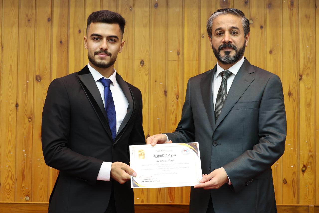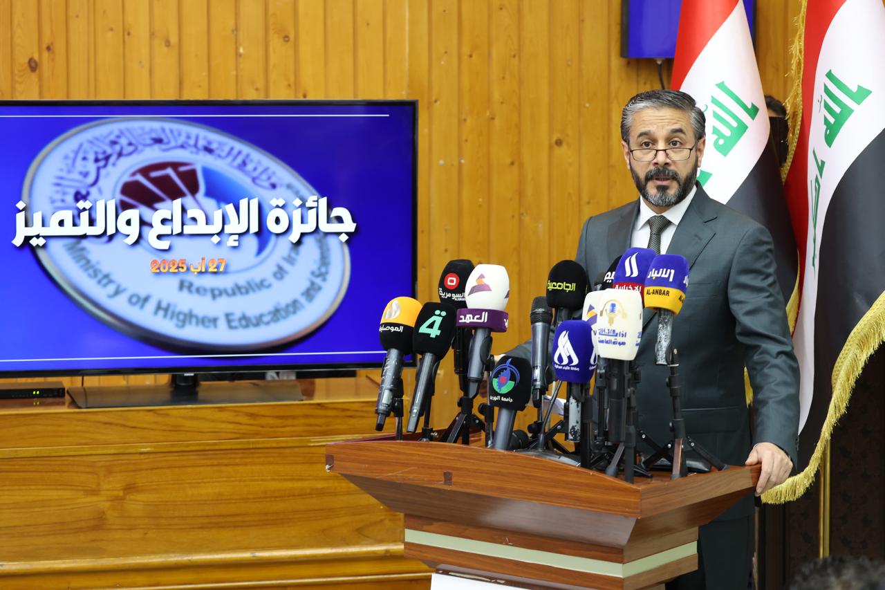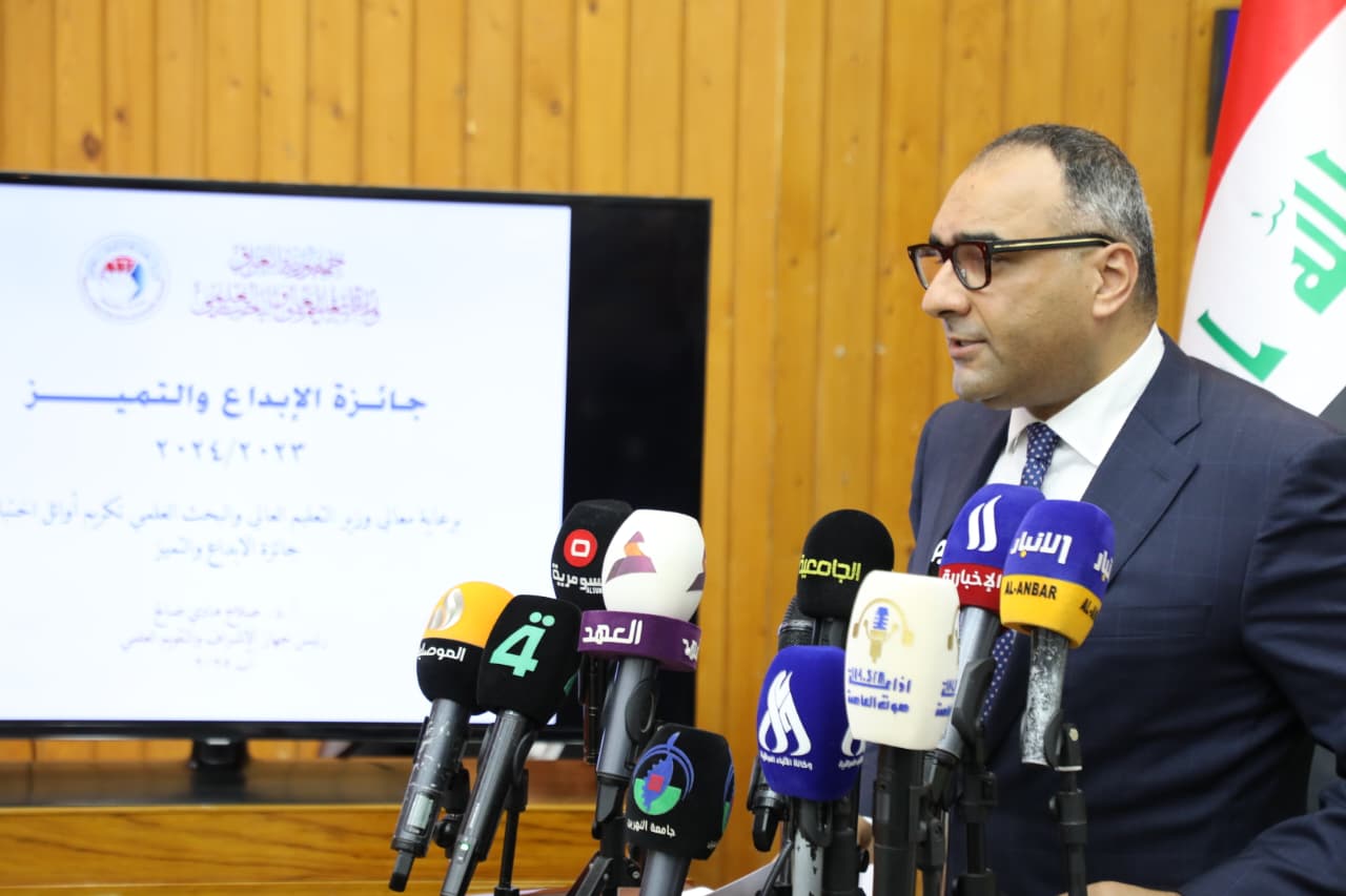 كرّم وزير التعليم العالي والبحث العلمي الدكتور نعيم العبودي الطلبة الأوائل الفائزين بجائزة الإبداع والتميّز في الاختبار التقويمي الذي يشمل تخصصات الطب وطب الأسنان والصيدلة والتمريض والهندسة والقانون والتقنيات الصحية والطبية والتقنيات الهندسية.