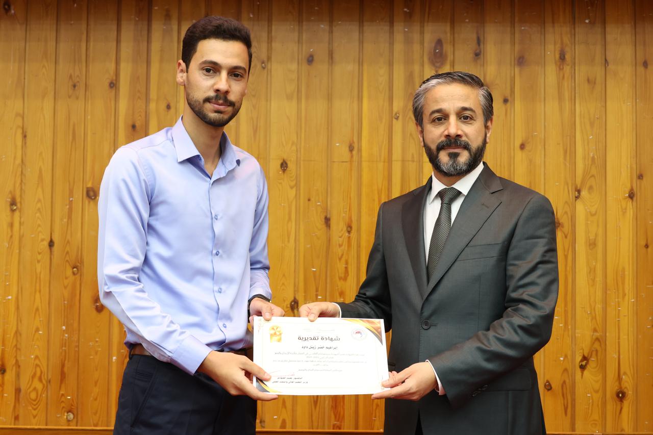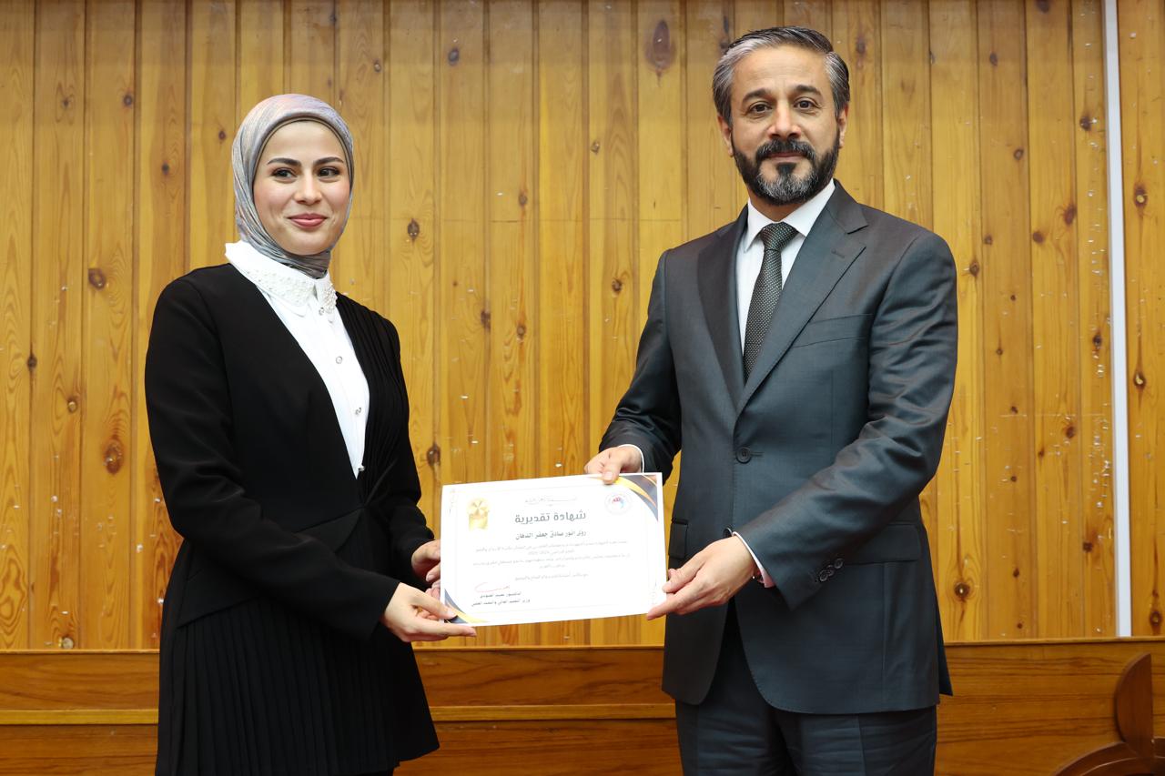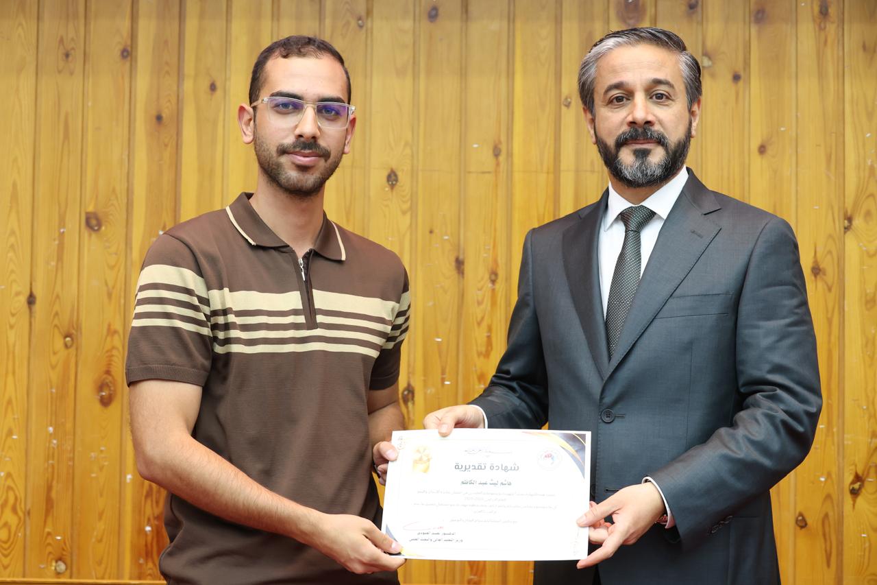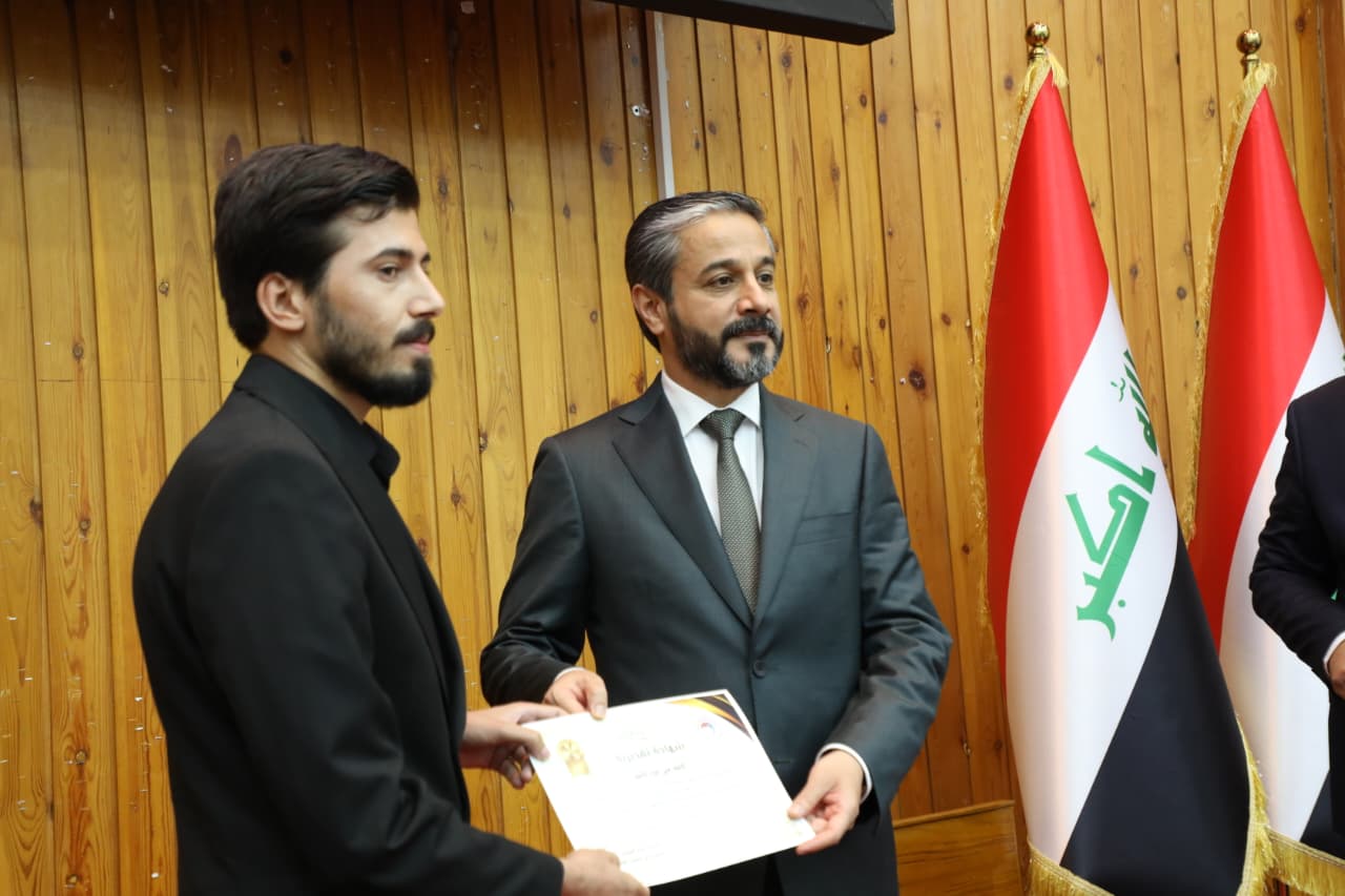 كرّم وزير التعليم العالي والبحث العلمي الدكتور نعيم العبودي الطلبة الأوائل الفائزين بجائزة الإبداع والتميّز في الاختبار التقويمي الذي يشمل تخصصات الطب وطب الأسنان والصيدلة والتمريض والهندسة والقانون والتقنيات الصحية والطبية والتقنيات الهندسية.