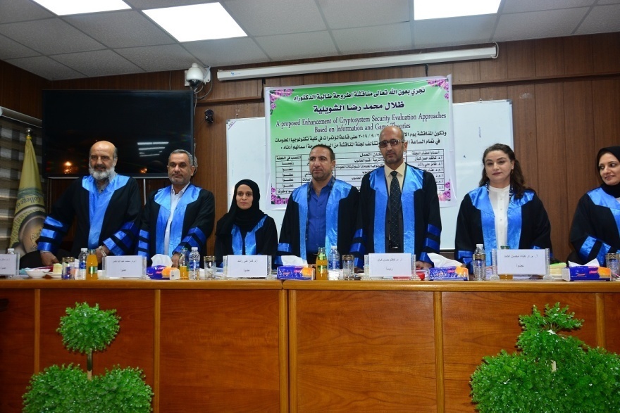 ناقشت أطروحة دكتوراه في جامعة بابل ، تحسين لطرق تقويم أمنية أنظمة التشفير بالاعتماد على نظريتي المعلومات واللعبة.