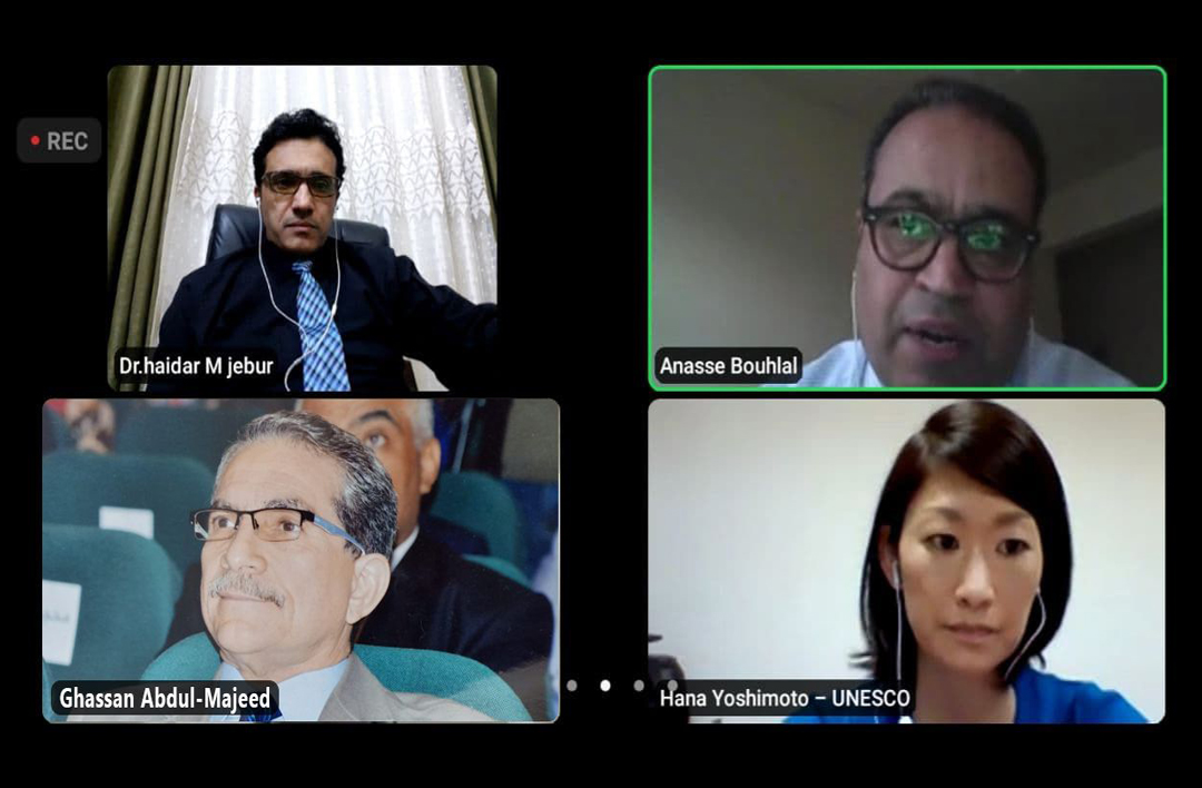 جاء ذلك خلال الاجتماع الإلكتروني المشترك بين وزارة التعليم العالي والبحث العلمي الذي مثلها السيد مدير عام البحث والتطوير الدكتور غسان حميد عبد المجيد وبحضور رئيس جامعة تكنولوجيا المعلومات والاتصالات الدكتور عباس البكري وعدد من ممثلي دوائر الوزارة وبين مسؤولي مكتب اليونسكو الإقليمي في بيروت وممثلي المنظمة الدولية في المنطقة العربية وبغداد.