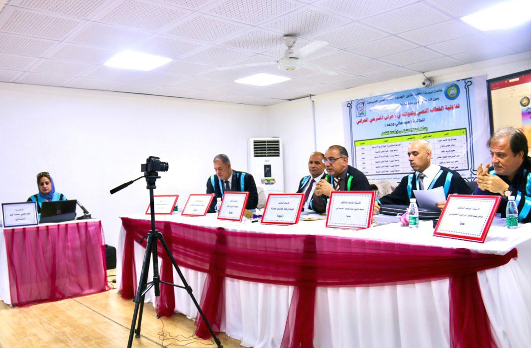 وتهدف الاطروحة التي قدمتها الطالبة هبة هاني محمد الى تعريف المنطلقات الفكرية والفلسفية للتداولية وآليات اشتغالها في خطاب النص المسرحي وتحولاته الى بنية العرض المسرحي.
