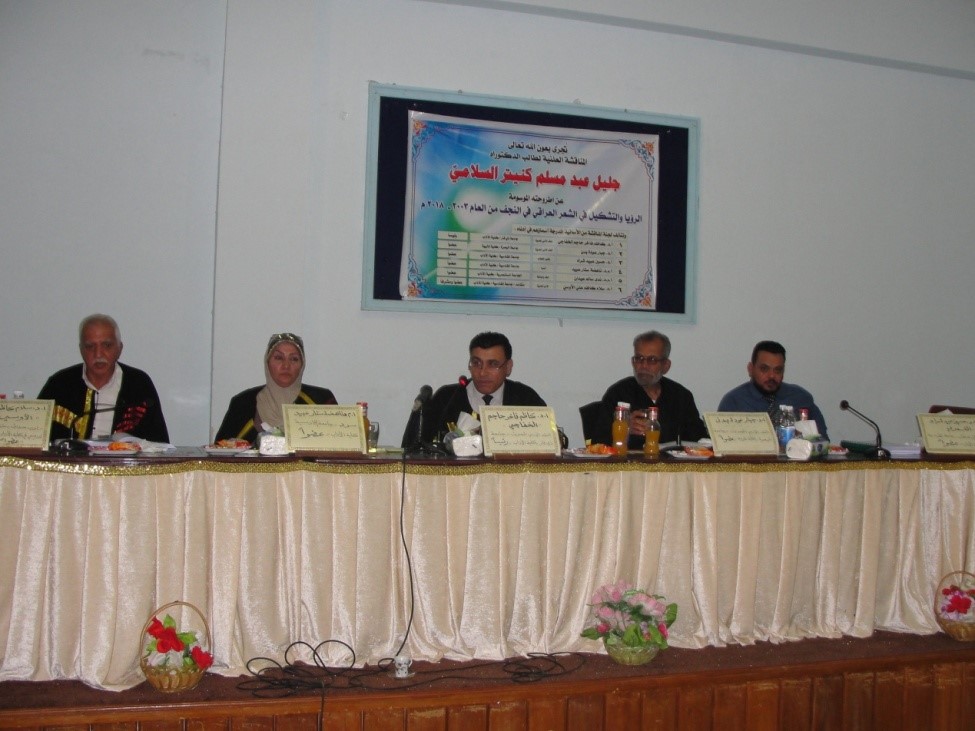 وتهدف الأطروحة التي قدمها الطالب جليل عبد مسلم ، إلى التعرف على ملامح التجديد في الشعر النجفي المعاصر, ودراسة شعراء النجف المعاصرين من 2003حتى 2018م.