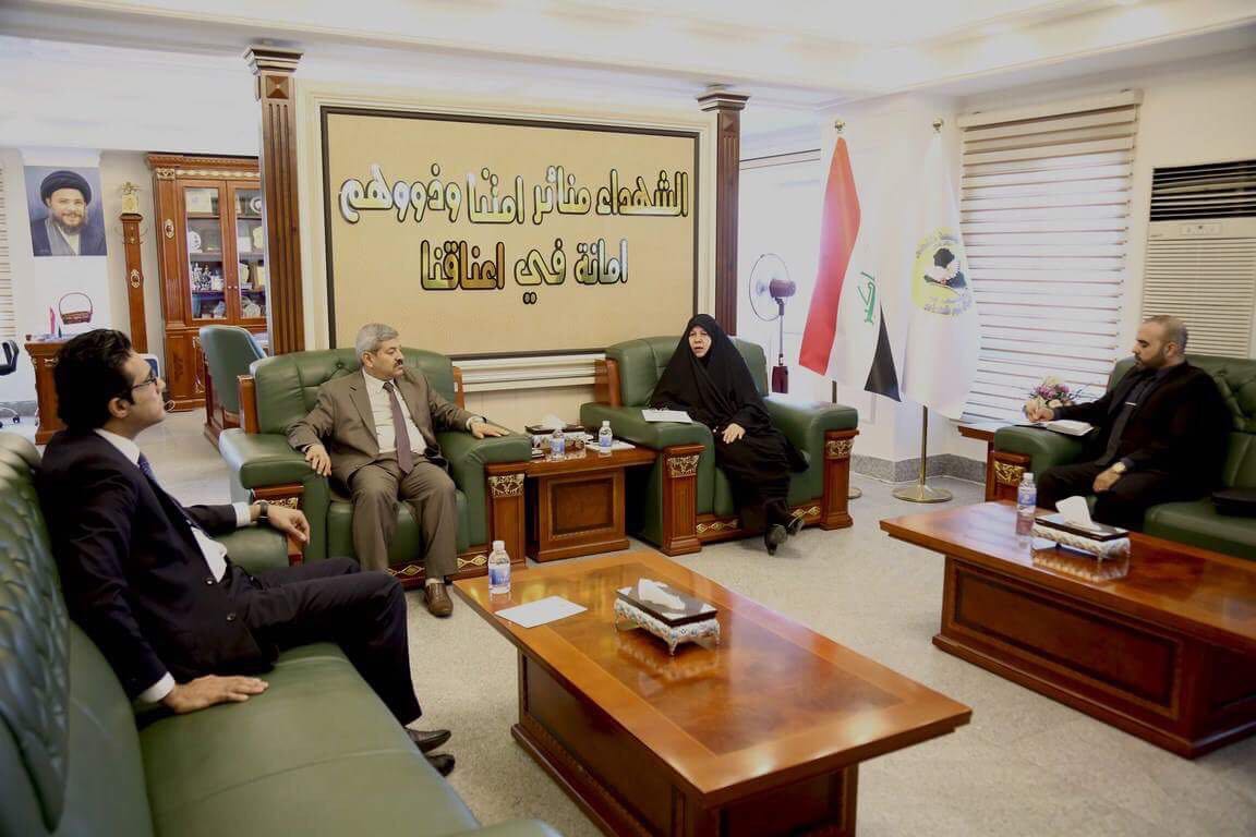 زار وفد من مكتب وزير التعليم العالي والبحث العلمي مؤسسة الشهداء والتقى رئيسة المؤسسة السيدة ناجحة عبد الامير الشمري مؤكدا التزام الوزارة بالتشريعات النافذة في التعاطي مع حقوق ذوي الشهداء وامتيازاتهم