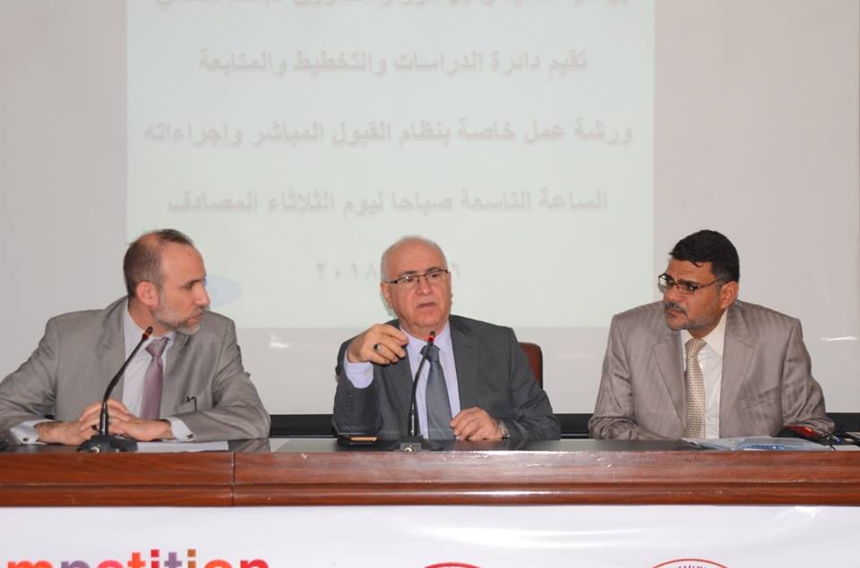 أقامت دائرة الدراسات والتخطيط والمتابعة في وزارة التعليم العالي والبحث العلمي، ورشة عمل عن تطوير آليات القبول المباشر للسنة الدراسية 2019/2018 بمشاركة مديري التسجيل في الجامعات. وقال وكيل الوزارة لشؤون البحث العلمي الدكتور فؤاد قاسم محمد خلال ترؤسه الورشة، إن الوزارة تعمل على تطوير آليات القبول بما يعزز إجراءات وآليات التقديم على الخيارات المتوفرة ضمن قناة القبول المباشر. وأضاف الوكيل ان الوزارة تعمل ضمن إستراتيجيتها على تطوير مفردات برنامج القبول المركزي بما يؤهله لتوفير الفرص لجميع الطلبة ضمن السياقات المعمول بها.