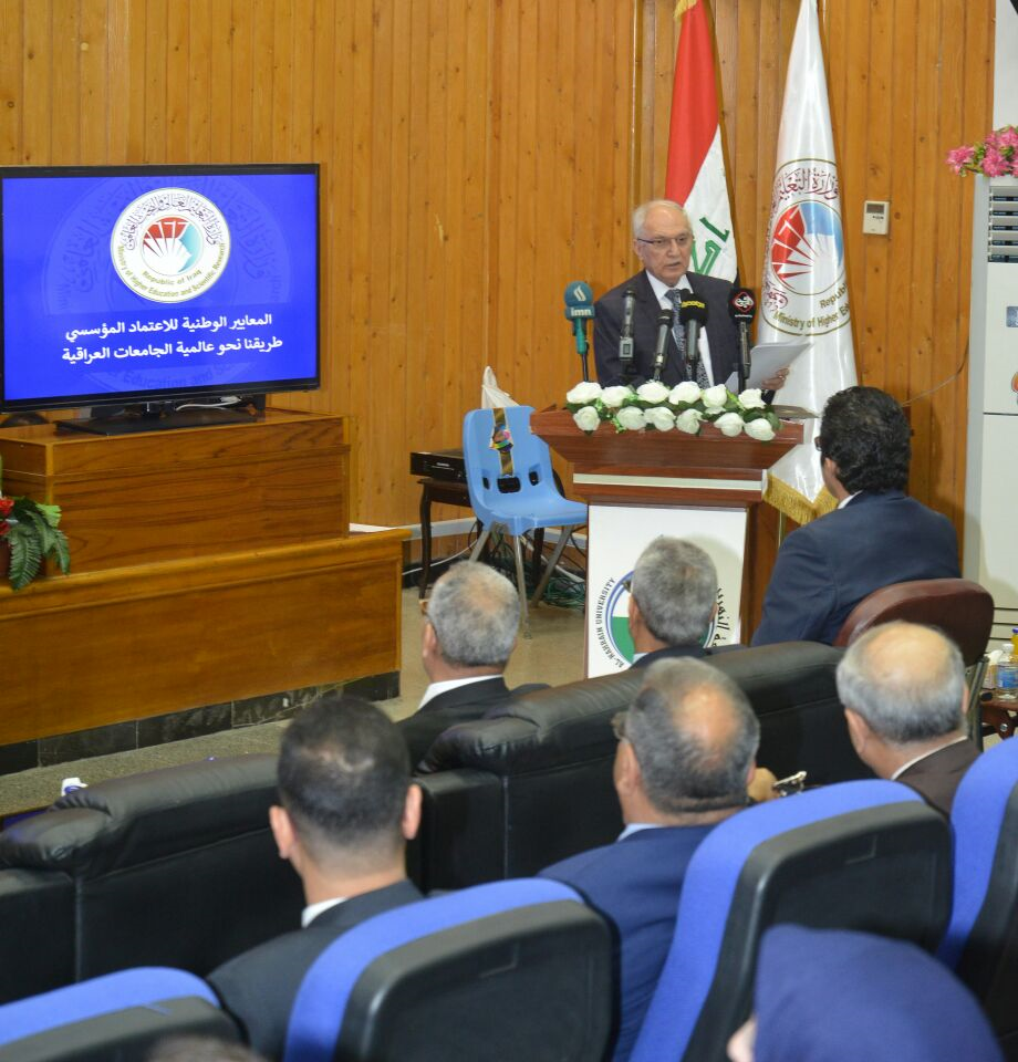 وأضاف أن الإصرار على صناعة بيئة علمية معيارية أسفر عن نجاح غير مسبوق يتمثل بالشروع بتأسيس هيئة اعتماد وطنية مستقلة بإشراف وزارة التعليم العالي وبالتعاون مع هيئة المستشارين في مجلس الوزراء تحمل على عاتقها إعداد معايير الاعتماد والتقييم لكل مؤسسات الدولة العراقية وبكافة اختصاصاتها.