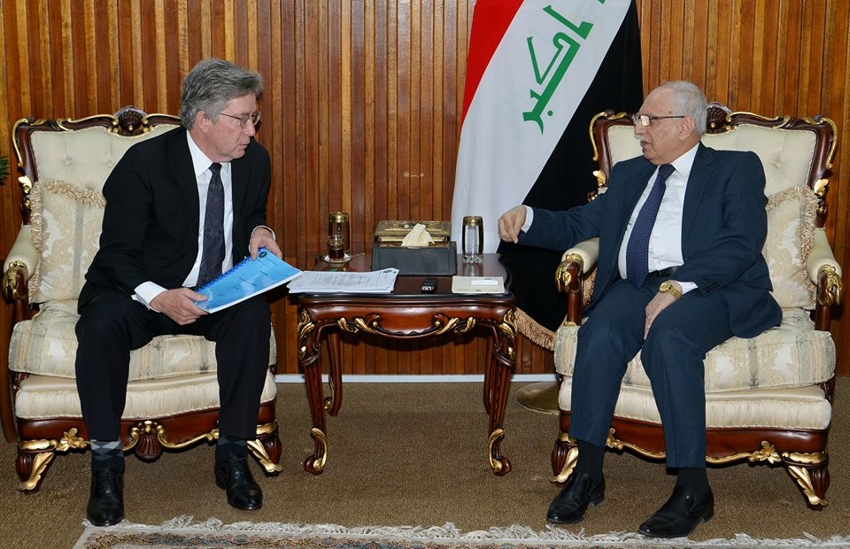 ناقش وزير التعليم العالي والبحث العلمي الدكتور عبد الرزاق العيسى مع الدكتور مايكل مولينكس استكمال متطلبات مشروع الجامعة الامريكية