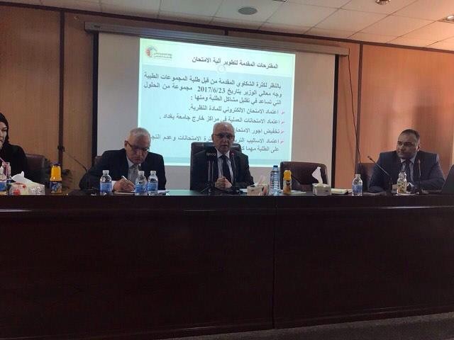 وناقشت الورشة التي حضرها عدد من عمداء الكليات الطبية ورؤساء المراكز الامتحانية في الجامعات العراقية تطوير آليات الامتحان النظرية والعملية.