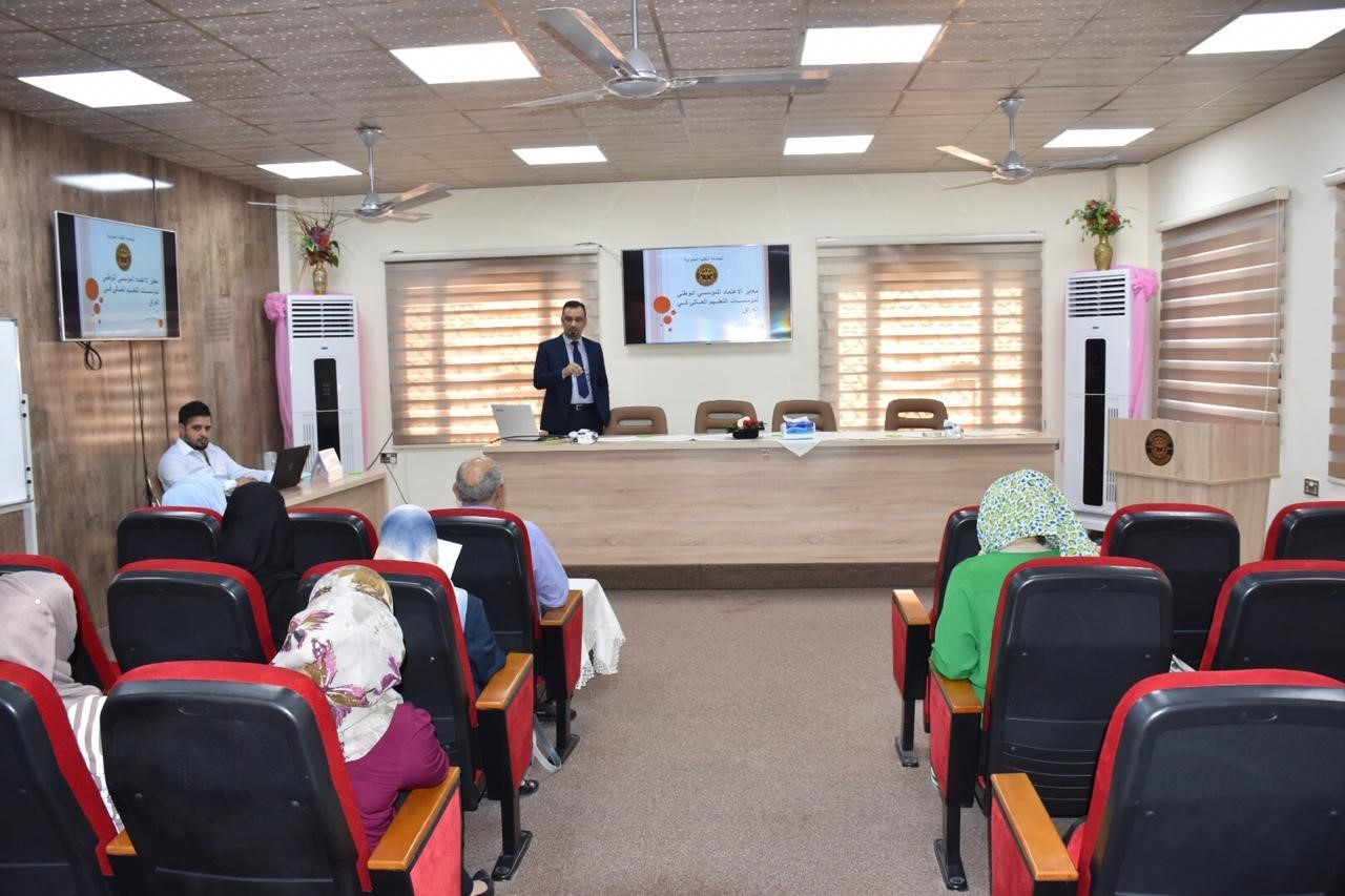وتضمنت الورشة التي حاضر فيها الدكتور زيد علاء حسين التعريف بمعايير الاعتماد والمستوى الذي تسعى المؤسسة للوصول أليه كي تكون ضمن المعيار الحقيقي.