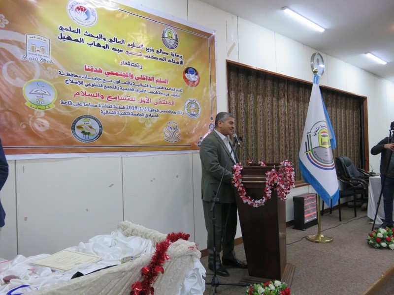 نظمت الجامعة التقنية الشمالية الملتقى الأول للتسامح والسلام، بمشاركة رؤساء جامعات الموصل ومسؤولي منظمات المجتمع المدني .
