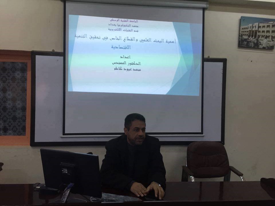 نظم معهد التكنولوجيا- بغداد في جامعة التقنية الوسطى, ندوة علمية عن أهمية البحث العلمي في تحقيق التنمية الاقتصادية بمشاركة أساتذة متخصصين.