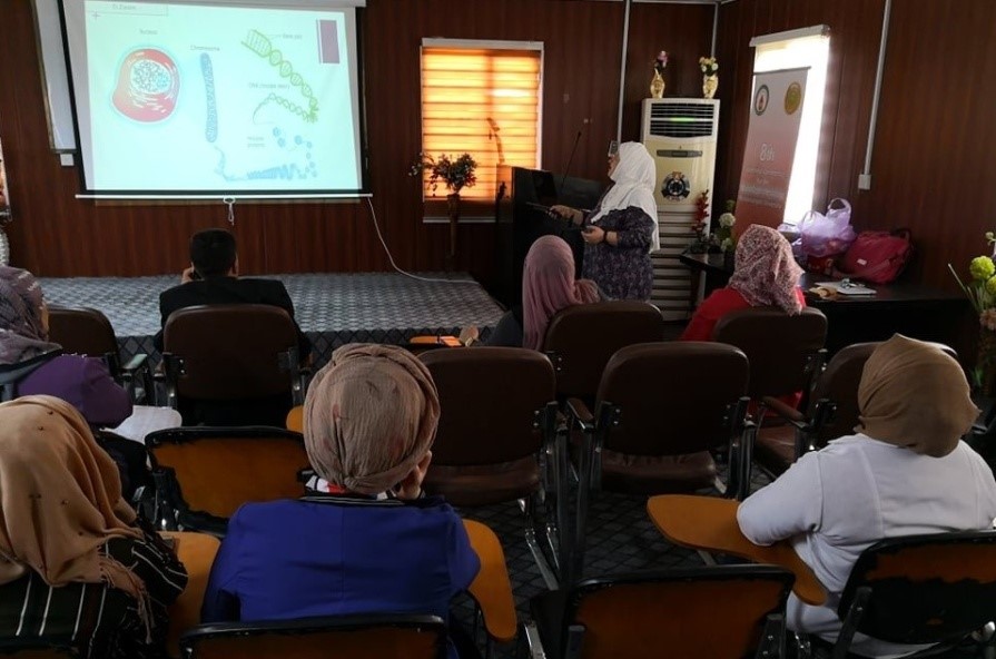 وتهدف المحاضرة التي قدمتها التدريسية في المركز الدكتورة منال علي عبد الصاحب، إلى بيان دور وآلية عمل مختبر وفحوصات الوراثة الجزيئية، ومواكبة التقدم الكبير الحاصل في مجال علم الوارثة الطبية وعلم دراسة الكروموسومات البشرية، وطرق تحديد التغيرات العددية والتركيبية فيها، وكيفية الإفادة من هذه العلوم وفحوصاتها في اكتشاف وعلاج العديد من الحالات المرضية.
