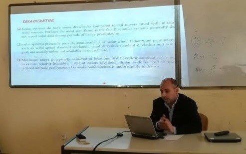 وناقشت المحاضرة، أنواع السودار والعوامل التي تؤثر سلباً فيه فضلا عن تطبيقاته المختلفة، لاسيما في تحديد الانقلاب الحراري، واستعماله في دراسة تلوث الهواء، وطاقة الرياح، والطيران، وتطبيقاته في محطات الطاقة النووية.
