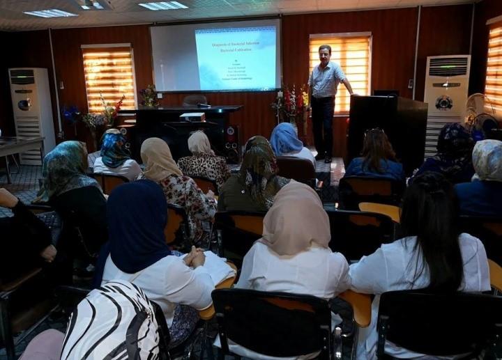 نظم المركز الوطني لبحوث وعلاج أمراض الدم في الجامعة المستنصرية ورشة عمل عن التشخيص المختبري للبكتيريا، بمشاركة أطباء وتدريسيين وطلبة الدراسات الأولية والعليا من مختلف الجامعات. وتهدف الورشة إلى تعريف المشاركين بعملية التشخيص المختبري لأنواع البكتيريا المختلفة، وتوضيح آلية هذه العملية وشرح أبعادها وتأثيراتها على العائلة والفرد بالنظر لكثرة وانتشار الإصابة بالالتهابات البكتيرية وما تسببه من مشكلات صحية في المجتمع. وتضمنت الورشة إلقاء عدد من المحاضرات تناولت التعريف بالبكتيريا المرضية وأنواعها المختلفة وسلالاتها الجديدة التي تتميز بمقاومتها للمضادات الحيوية ومدى تأثيرها على صحة الإنسان، وأنواع المضادات الحيوية المستعملة للقضاء على هذه البكتريا وكيفية الإفادة منها في معالجة العديد من الأمراض التي تصيب الإنسان.