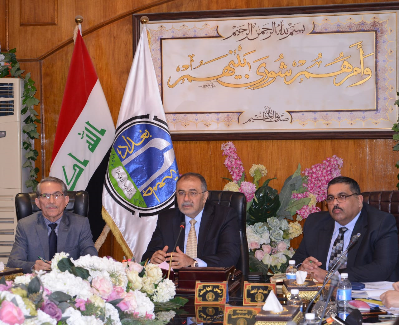 ترأس وزير التعليم العالي والبحث العلمي الأستاذ الدكتور قصي السهيل إجتماعاً لمجلس جامعة بغداد، مستعرضا مع أعضاء مجلس الجامعة محاور واهداف البرنامج الحكومي المتعلقة بالتعليم العالي.