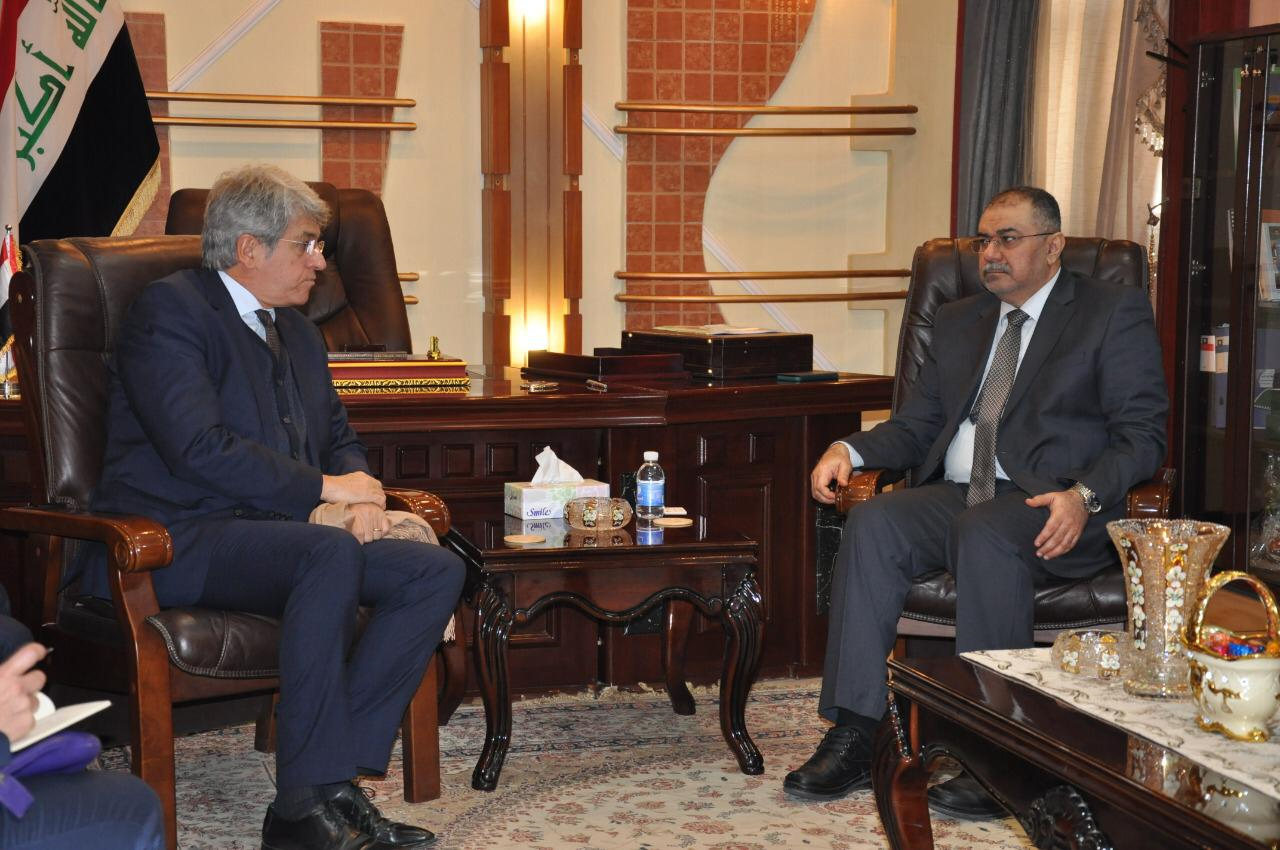 بحث وزير التعليم العالي والبحث العلمي الاستاذ الدكتور قصي السهيل مع السفير الفرنسي في العراق السيد مارك باريتي تطوير التعاون الثقافي والعلمي بين البلدين.