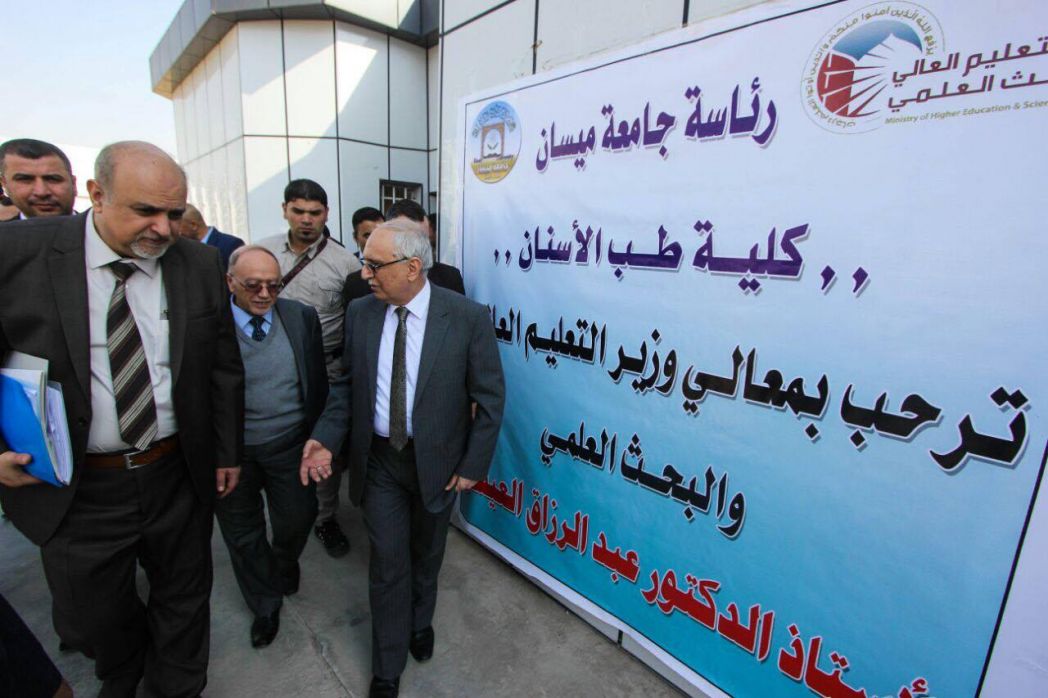 تفقد وزير التعليم العالي والبحث العلمي الدكتور عبد الرزاق العيسى كليات الطب وطب الأسنان والهندسة في جامعة ميسان واطلع العيسى على مستوى البنية التحتية لهذه الكليات وثمن حرص ملاكاتها التدريسية على تطوير خطوات النجاح والترصين العلمي في الاختصاصات الطبية والعلمية التي تمس حياة المجتمع.