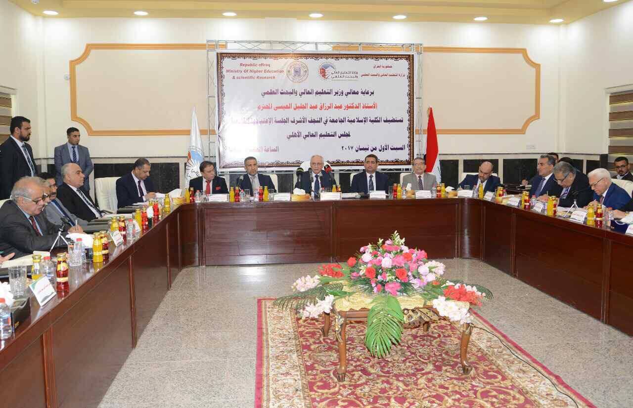 و ناقش المجتمعون آليات نسب القبول في التعليم الأهلي الجامعي, وعملية ترصين الدراسات الاولية تمهيداً لفتح الدراسات العليا فيها. كما بحثوا التنسيق مع النقابات اجل منح خريجي الكليات الاهلية عضوية نقاباتها, واليات تطبيق نظام المقررات الجديد, وتحديث المناهج الدراسية وتطويرها.