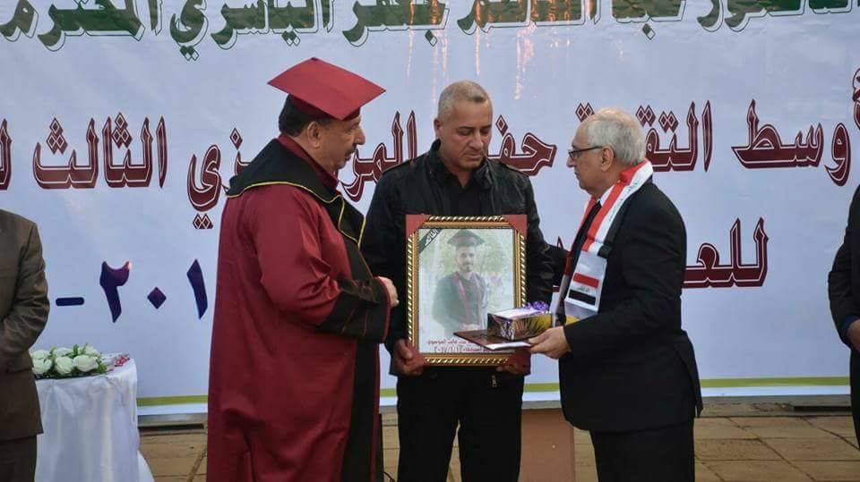 وكرم وزير التعليم العالي الدكتور عبد الرزاق العيسى، خلال الحفل ذوي شهداء الحشد الشعبي من منتسبي وطلبة الجامعة اضافة الى تكريم الطلبة الاوائل على الجامعة.