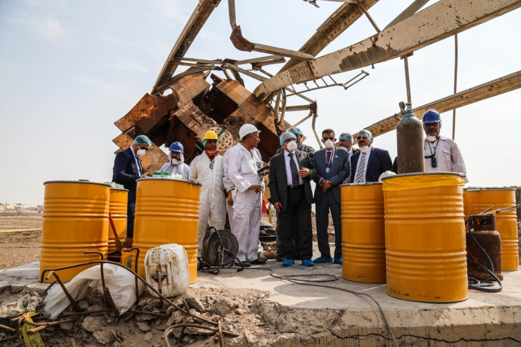 وتفقد العيسى المواقع التي يضطلع بمعالجتها خبراء وزارة التعليم العالي والعلوم والتكنولوجيا في الشركة العامة للحديد والصلب ومحطة المرسلات التابعة لشبكة الاعلام العراقي التي تعرضت للقصف في حرب الخليج الثانية.
