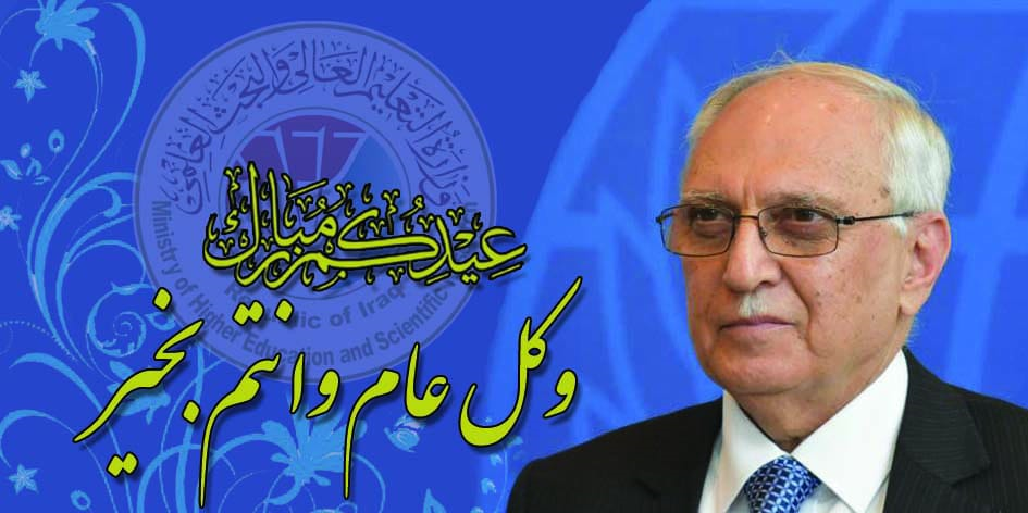 نتقدم بأصدق آيات التهاني للشعب العراقي والأمة الإسلامية بإطلالة عيد الفطر المبارك وأغتنم هذه المناسبة السعيدة لأتقدم بوافر التبريك للأسرة الأكاديمية والتعليمية سائلين الله عز وجل أن يعيده على الجميع أعواما مليئة بالمسرات والتوفيق .. إنه سميع مجيب . وكل عام والعراق بألف خير