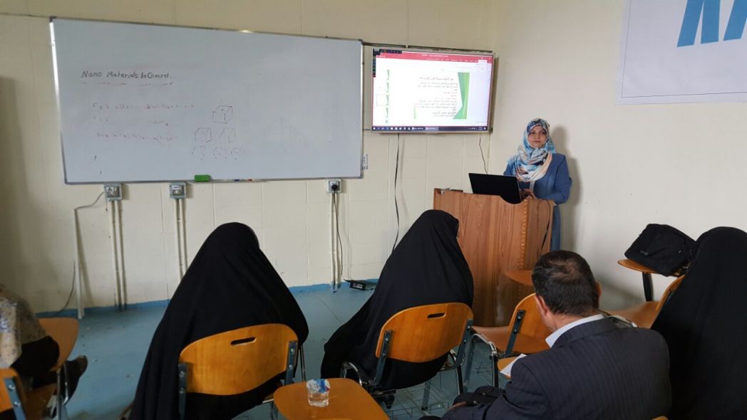 وناقشت الدورة, تأثير إضافة المواد النانوية في بنية الخرسانة, والأجهزة المختبرية المستعملة في دراسة التغيرات الحاصلة ببنيتها الهيكلية بعد إضافة تلك المواد.