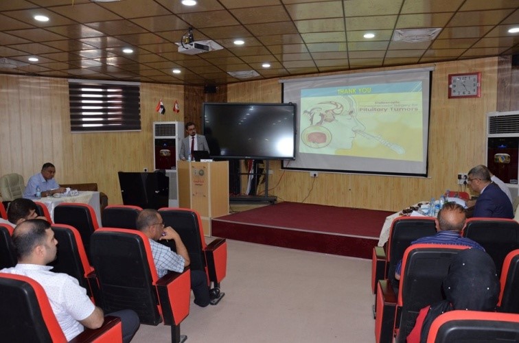 ناقش بحث بورد في كلية الطب بجامعة البصرة رفع ورم الغدة النخامية بالناظور عن طريق الأنف في مركز البصرة.